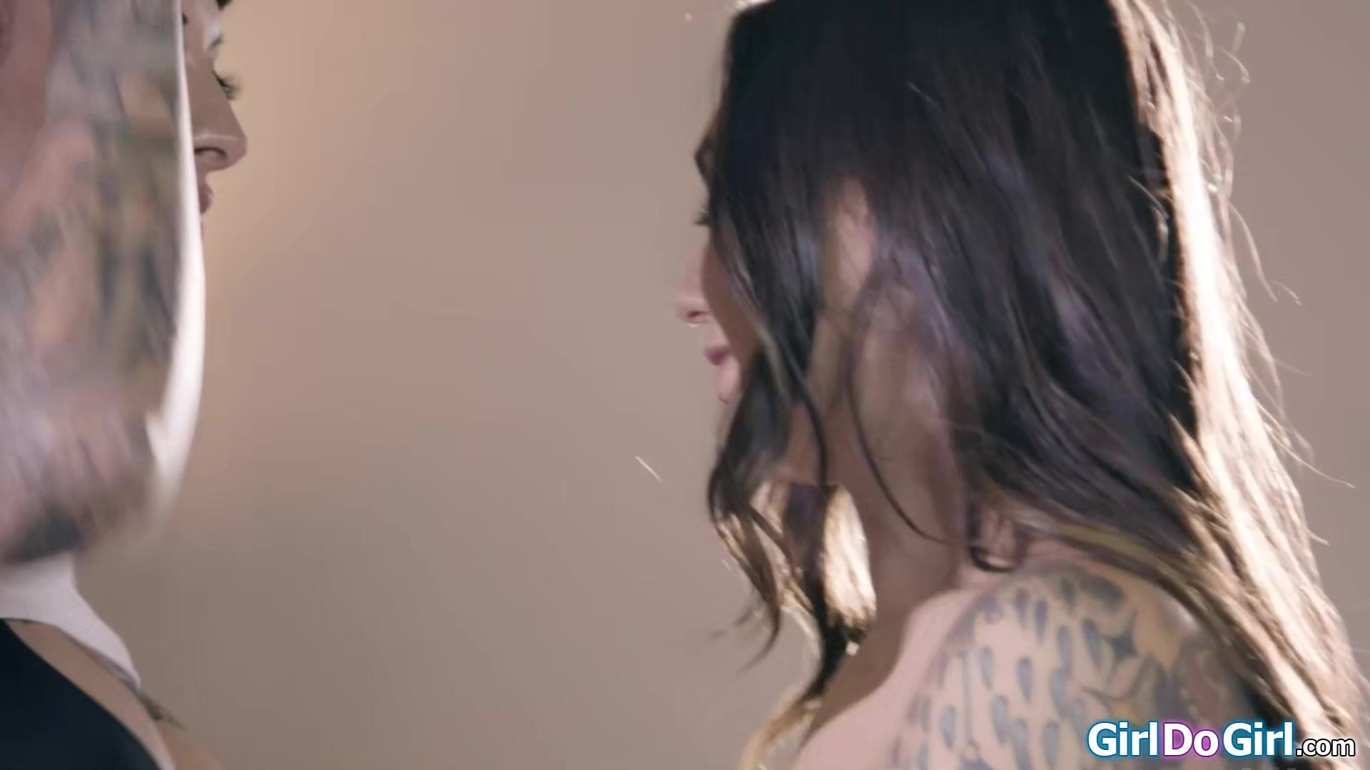 Ink queen Rocky Emerson rescues tattooed milf Jessie Lee from the shadowban and the sexual tension goes through the roof.The busty lesbian kisses the petite big tits babe and eats out her pussy.After they scissorfuck Rocky facesits her for an orgasm
