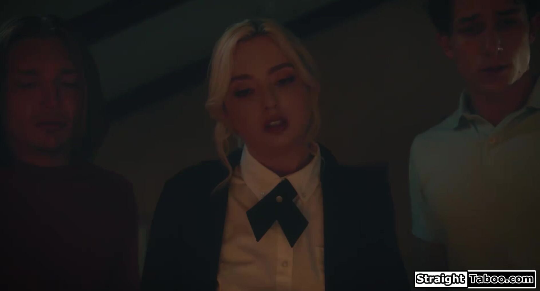 Blonde teen Lexi Lore got invited by her classmate and his stepbro to have group study. Only then she finds out that they just want to fuck her. She likes them anyway so she just gives in giving them both blowjob then gets double penetrated.