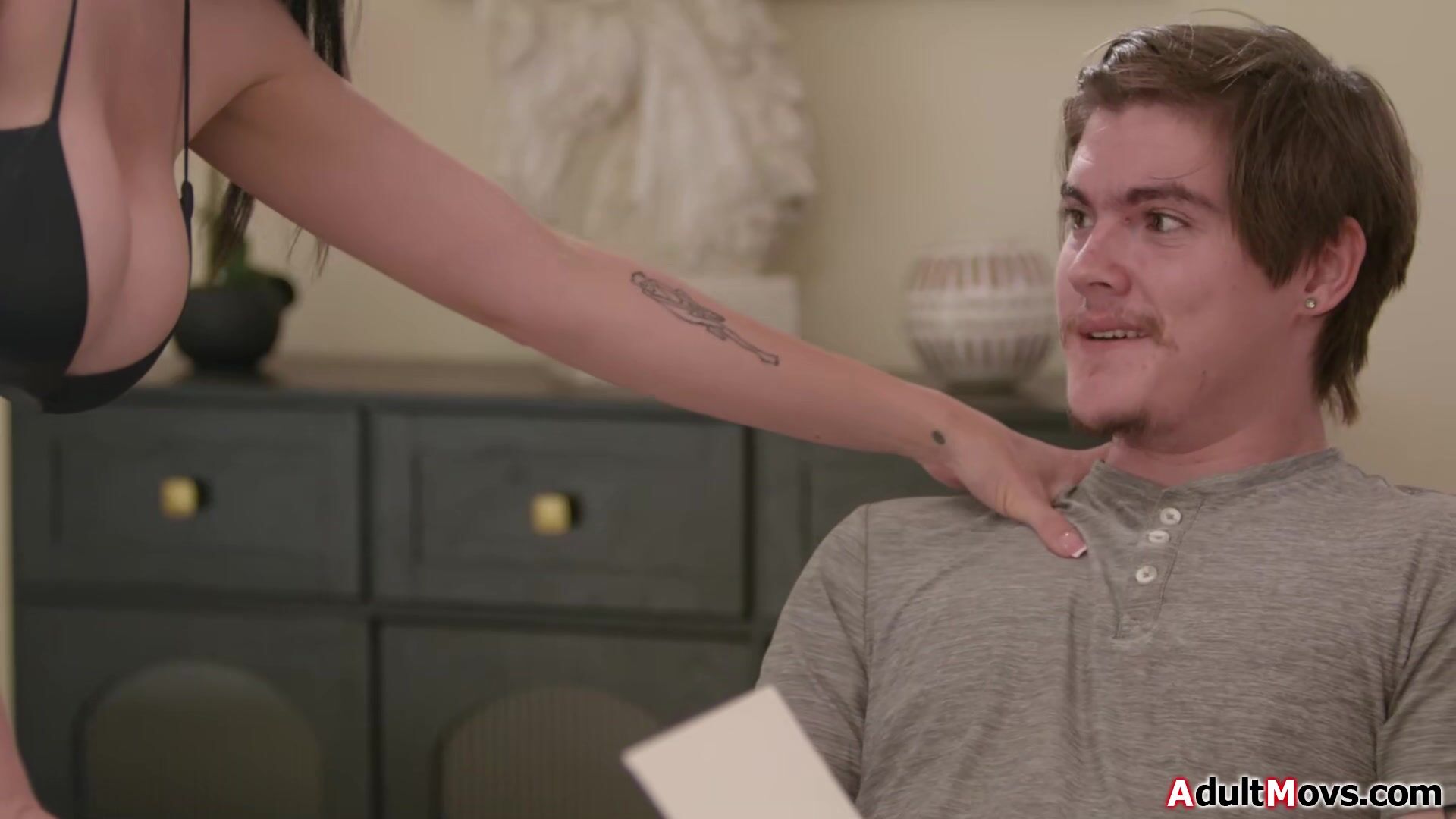 Im so sorry I just got distracted by your big boobs.Busty latin teacher Little Puck catches her student masturbating and teaches him a different lesson.The milf gives him a handjob and gets licked.After a deepthroat and titfuck she rides his cock