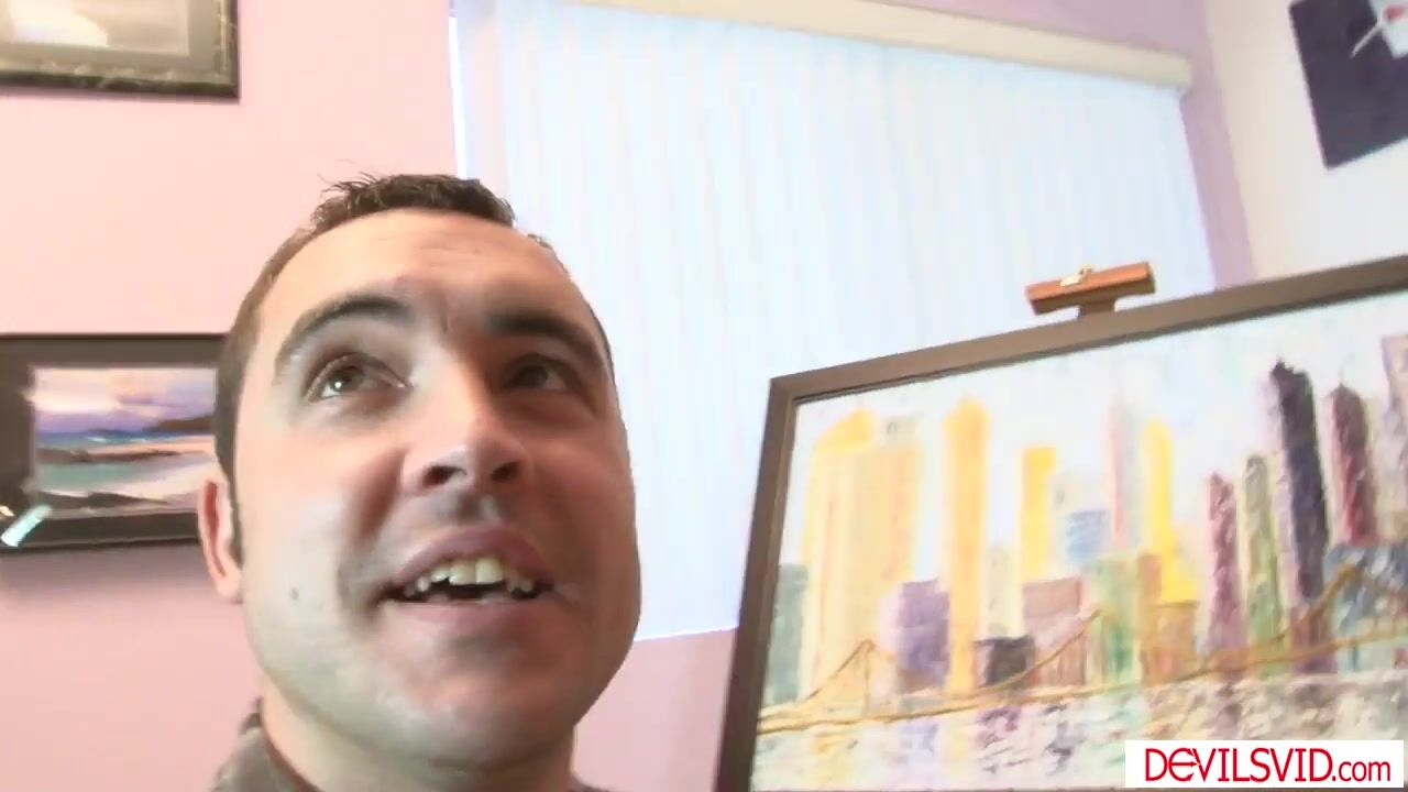 Milf Payton Leigh posted a fake art exhibit to lure in some hunk college dudes. There is a lucky guy who took the bait. She takes her upstairs then strip naked in front of him. The cougar is sucking his big cock then rides on him getting fucked hard.