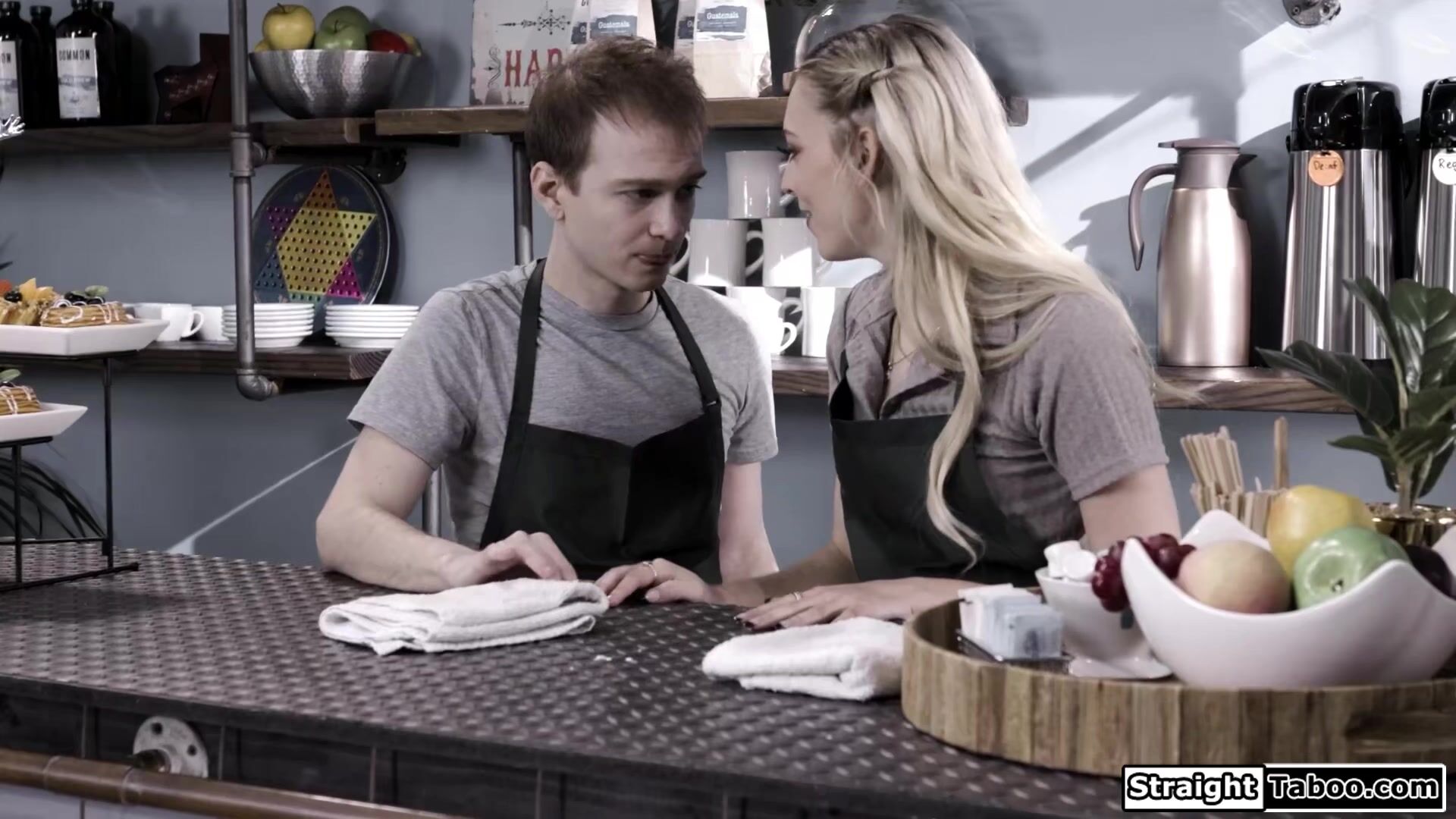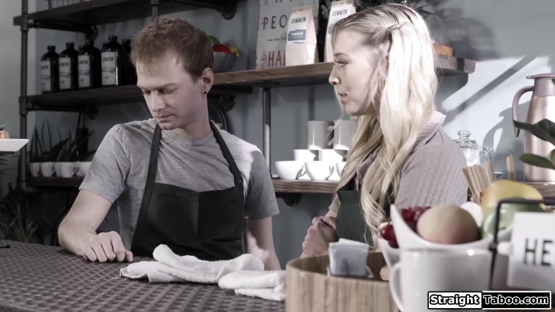 Lily Larimars bf cheated on her for being too uptight.The small tits teen will prove she can be freaky and sucks him behind the counter of the cafe.He fingers the blondes pussy while rimming her.At the risk of getting caught they fuck in public