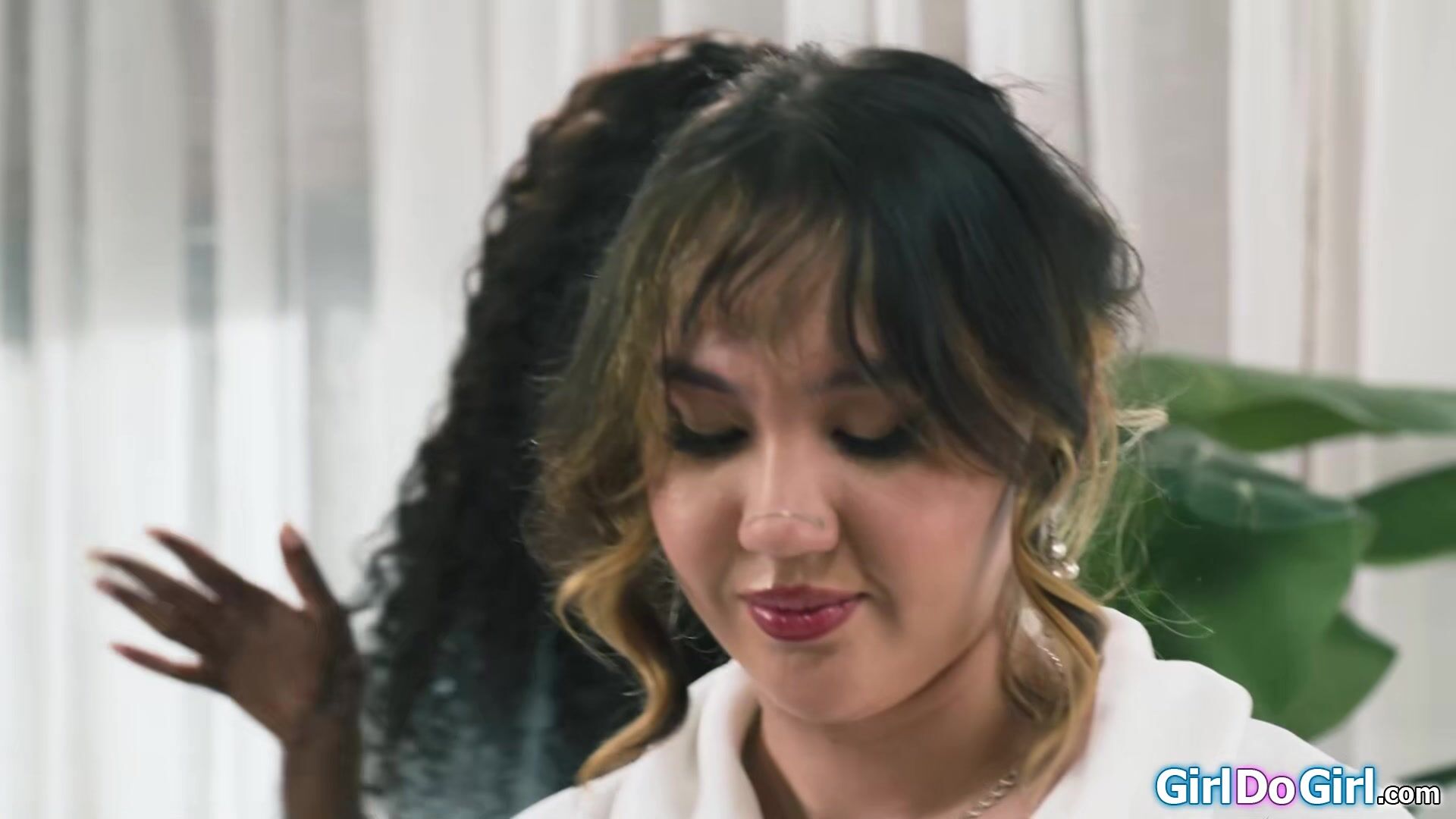 Big ass Asian Tomie Tang arrives at Mocha Menages BnB the breakfast and backrubs.The ebony milf gives special massages which include oral.The black babe kisses her small tits client and sucks on her boobs.The lesbians lick each others pussy