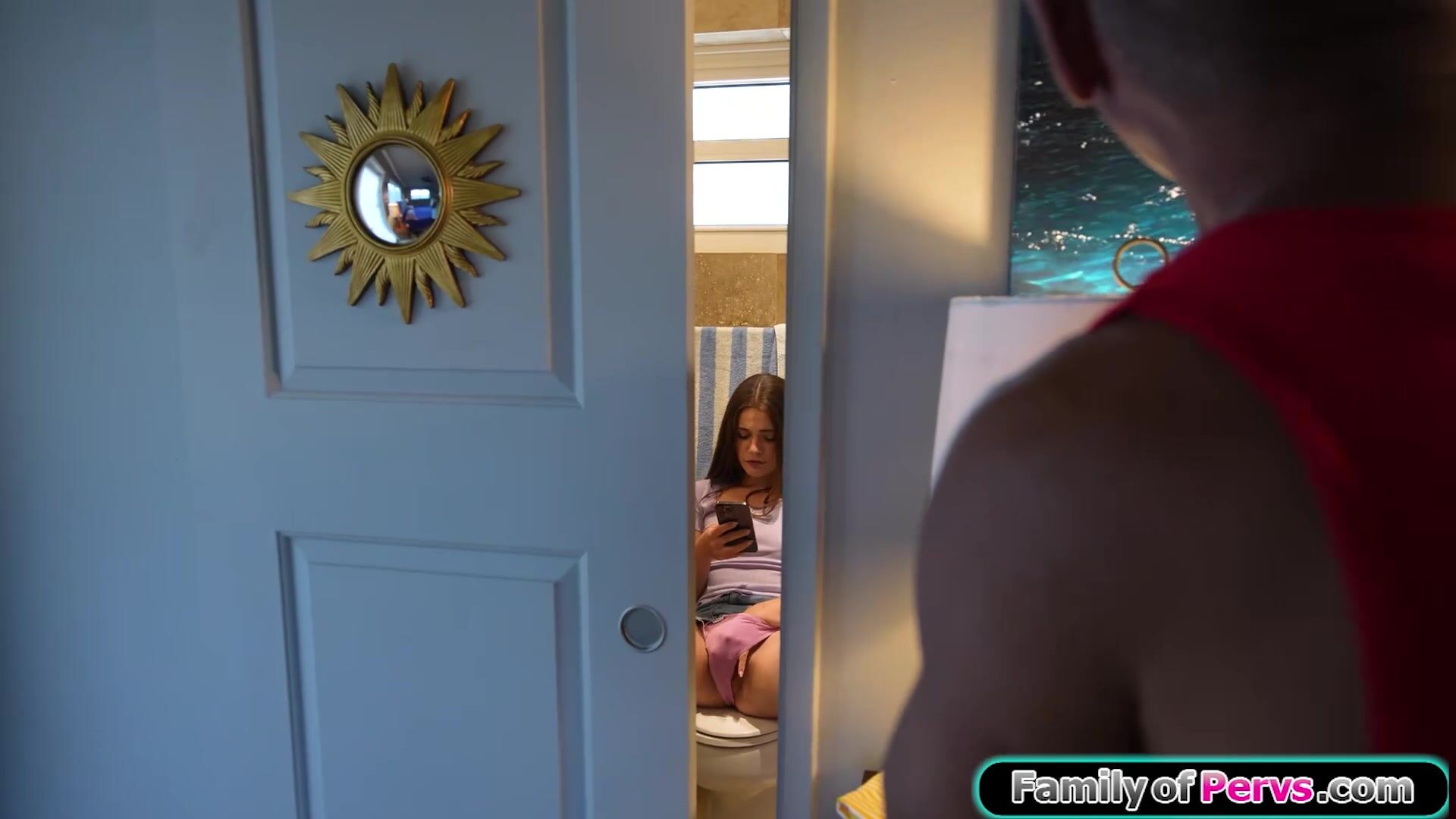 Stepdad walks in on his petite small tits stepdaughter Juniper Ren masturbating on a vid of him.To make it even more akward the brunette babe takes his big cock in her mouth.You cant blame the guy for being hard and ready to fuck her shaved pussy
