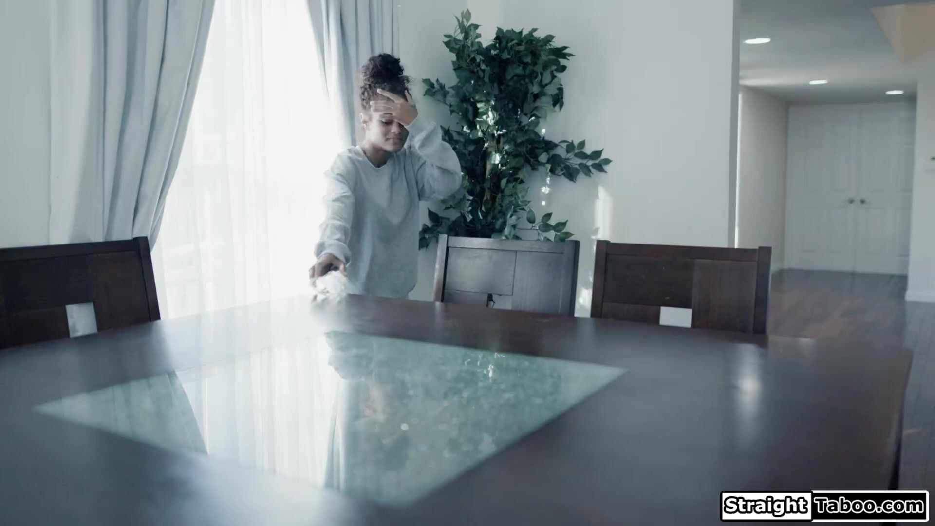 Petite Ebony Scarlit Scandal has been taken care of her ill husband during the pandemic.She stays quiet about it so she can fuck the delivery guy.The small tits brunette black babe gets her pussy licked and sucks off his big cock before shes banged