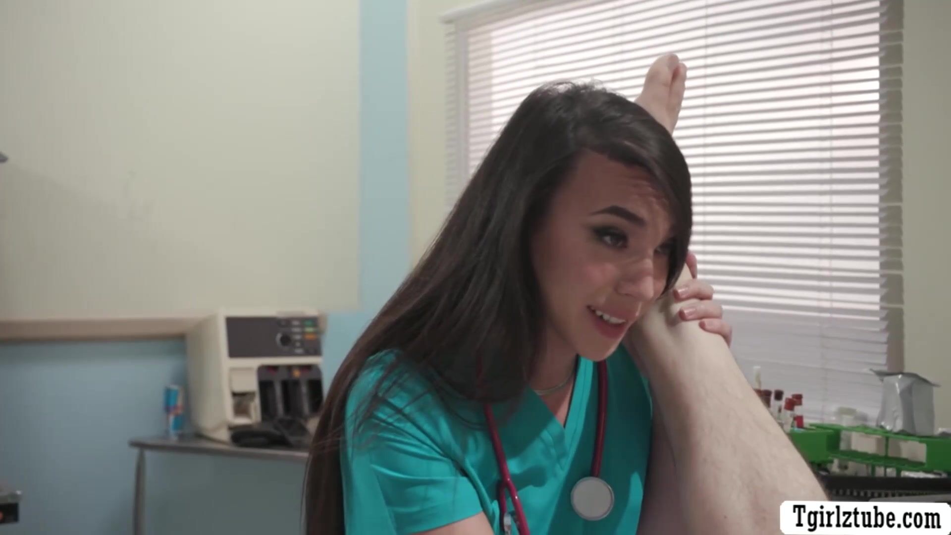 Lucky patient got his dick sucked by hot TS nurse