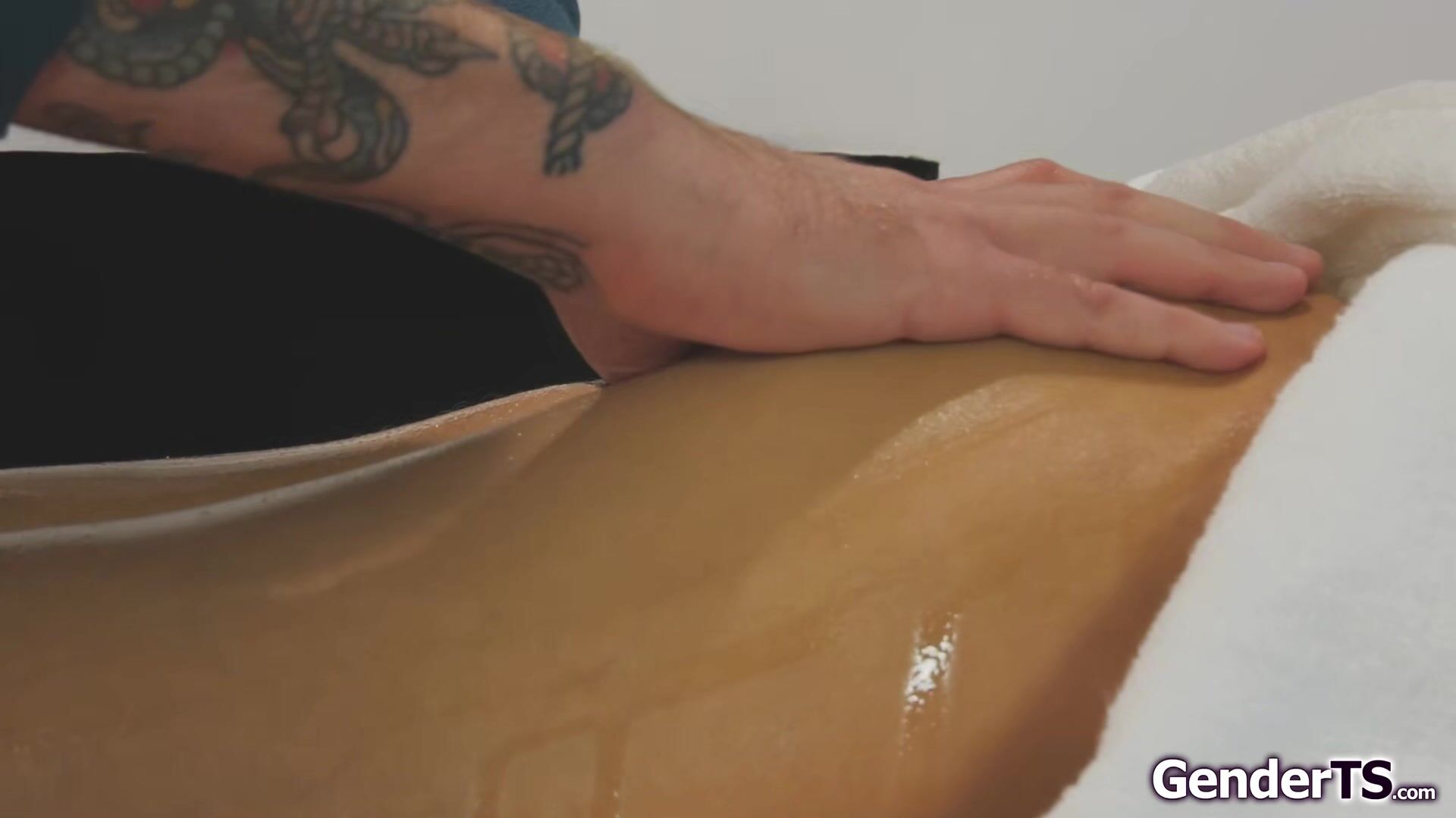 Big tits shemale Nadia Love enjoys her oil ass and boob massage and her tranny dick gets hard.The masseur handjobs the busty tattooed tgirl and puts his cock in her mouth for a blowjob.The blonde trans jerks off while being anal barebacked