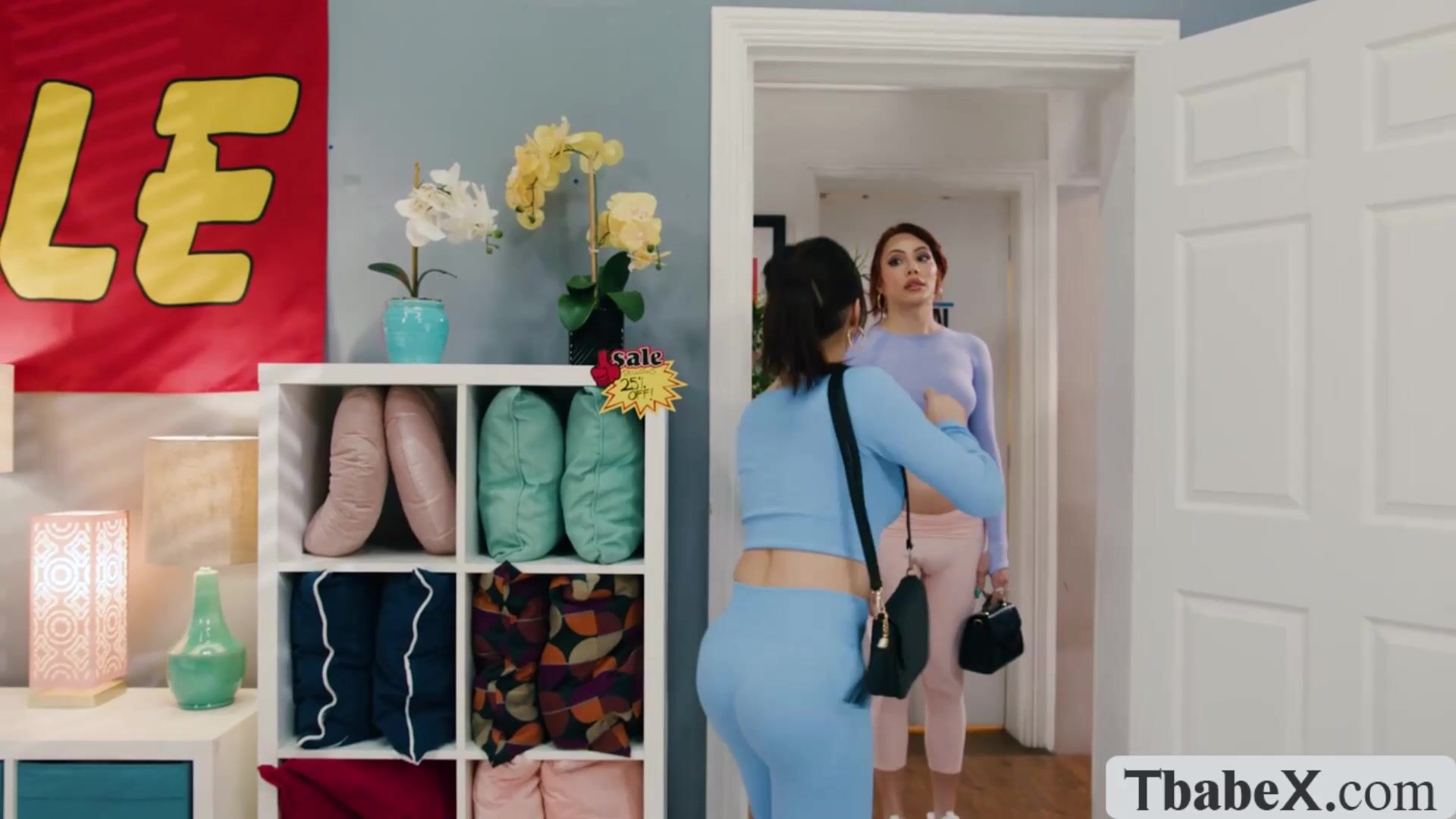 Two busty gorgeous TS are looking for some furnitures.They go to a furniture house and they meet hot store clerk and they decide to test the bed by fucking the hot clerks wet pussy so hard.Go to Tbabex.com for the full video of this.