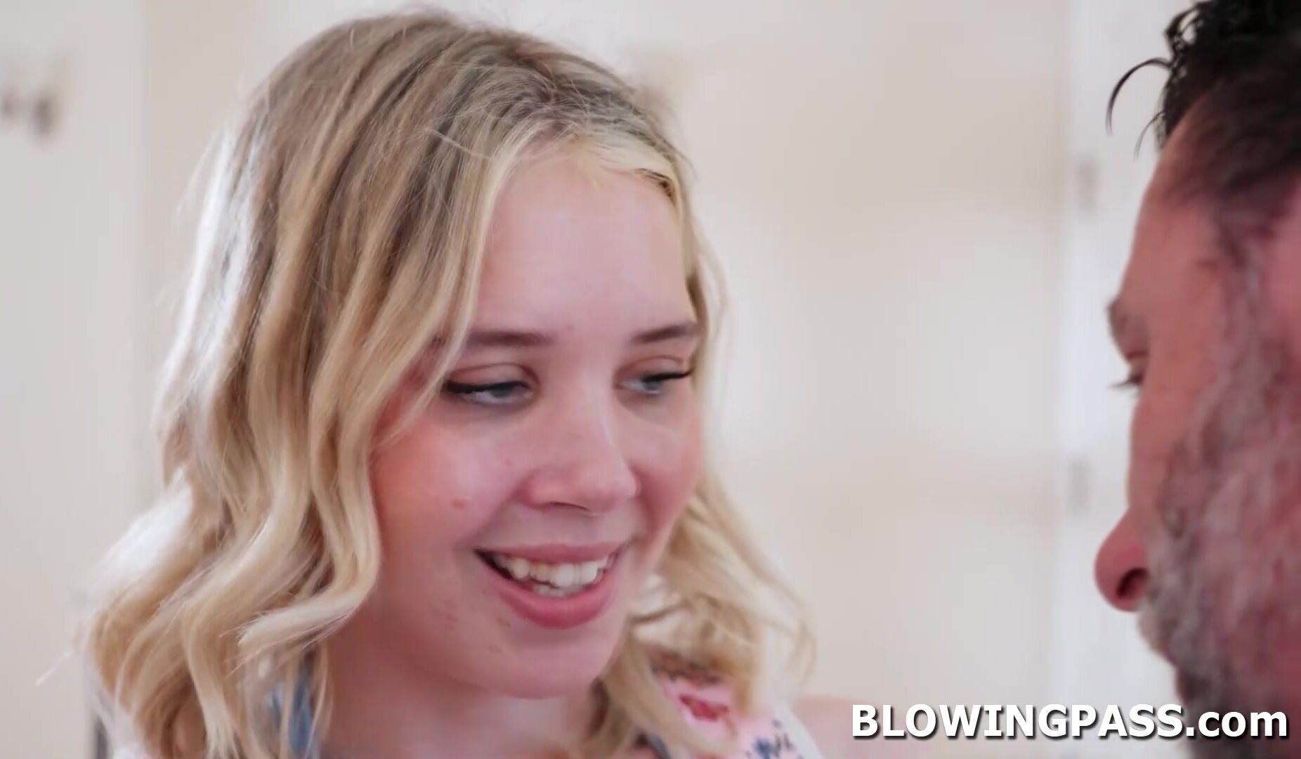 Teen babysitter Sophia Sterling is seducing her boss.The old man is kissing and sucking on her small tits.The blonde babe pulls his pants down and gives a sloppy blowjob.Shes using her feet then goes on deepthroating and gagging on the big cock.