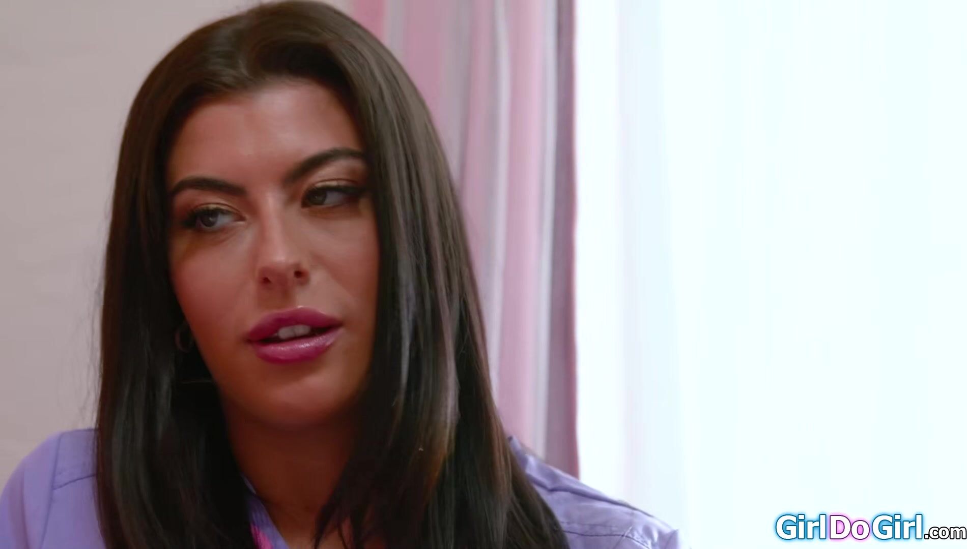 Busty stepmom Lolly Dames sees her stepdaughter Gal Ritchie wears her scrubs.The petite brunette makes it up to her with her tongue.She sucks the milfs big tits and is facesitted by her shaved pussy.The lesbians scissor and the mature blonde licks