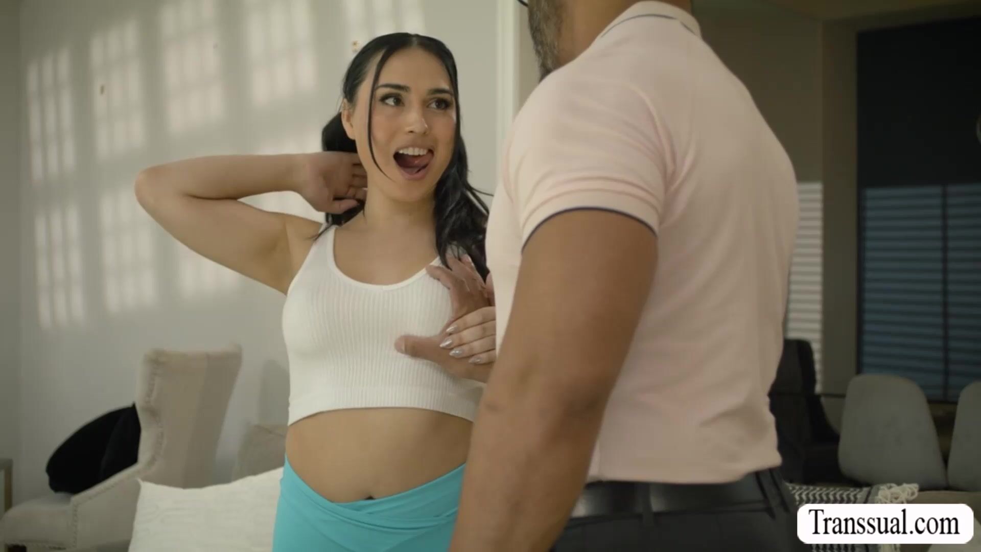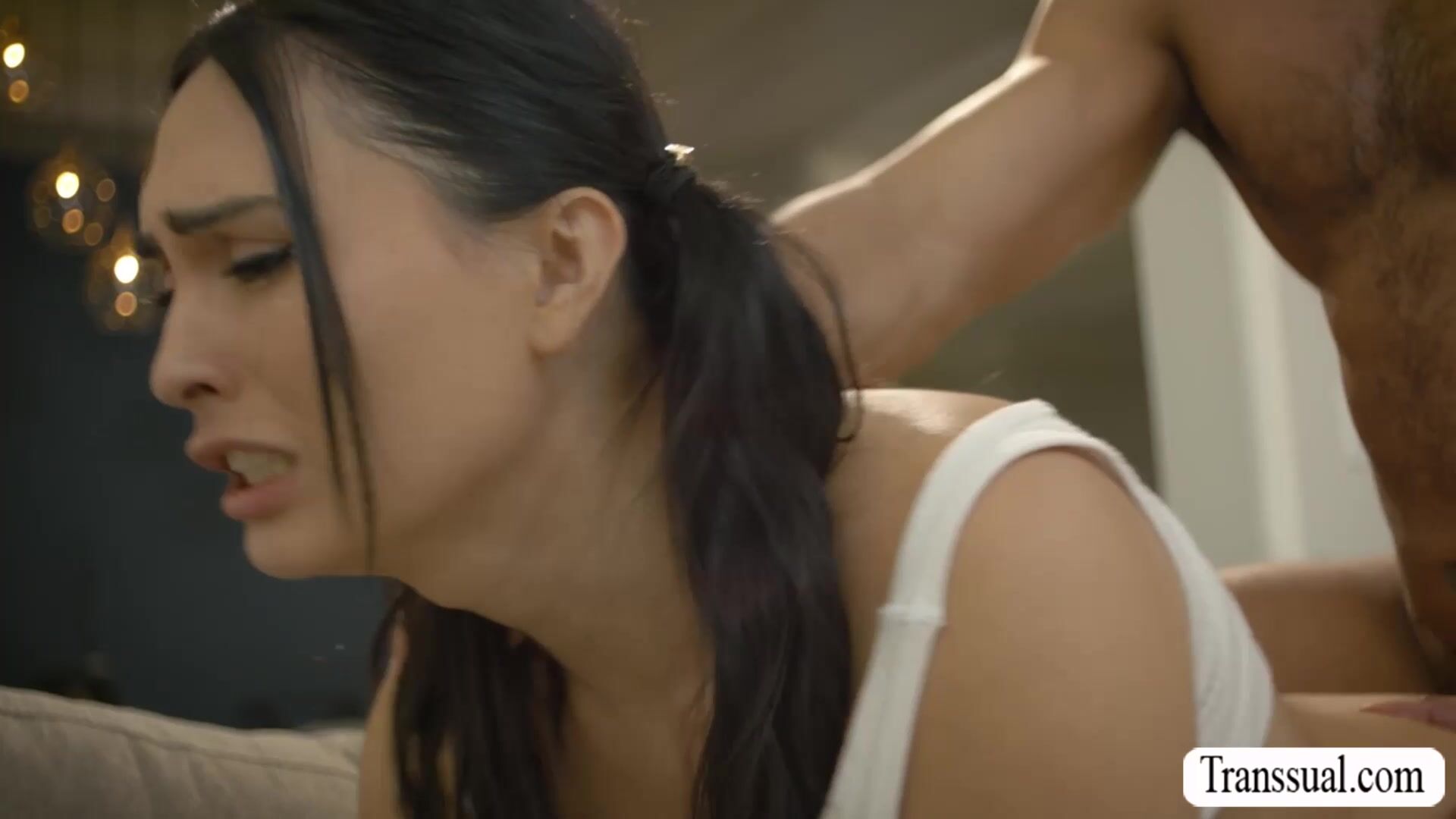 Hanging out with my hot sexy TS stepdaughter and she let me squeeze her tits.After that,she let me suck her hard shecock passionately and bareback fuck her asshole so hard.Go to Transsual.com for the full video of this and more.