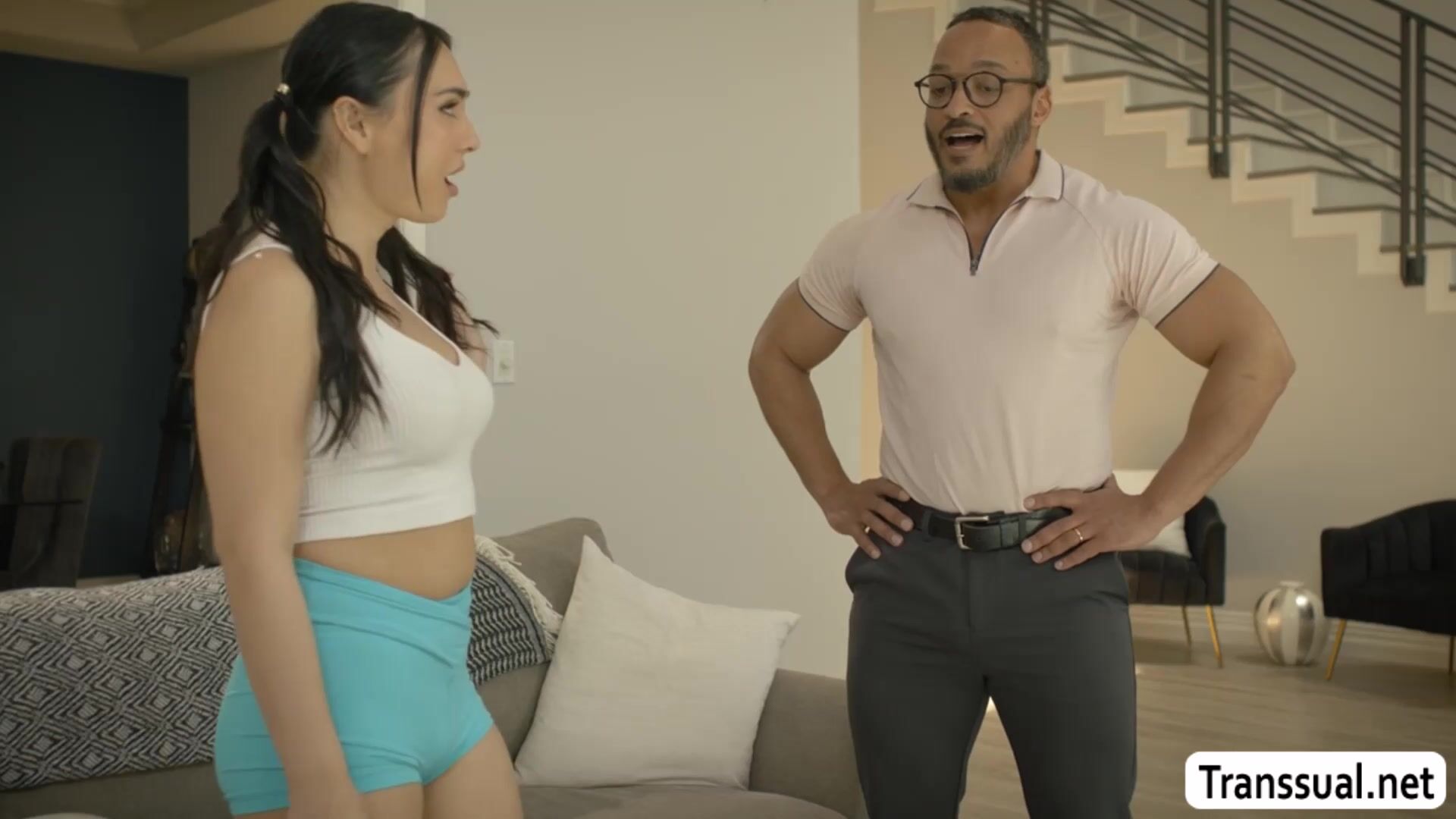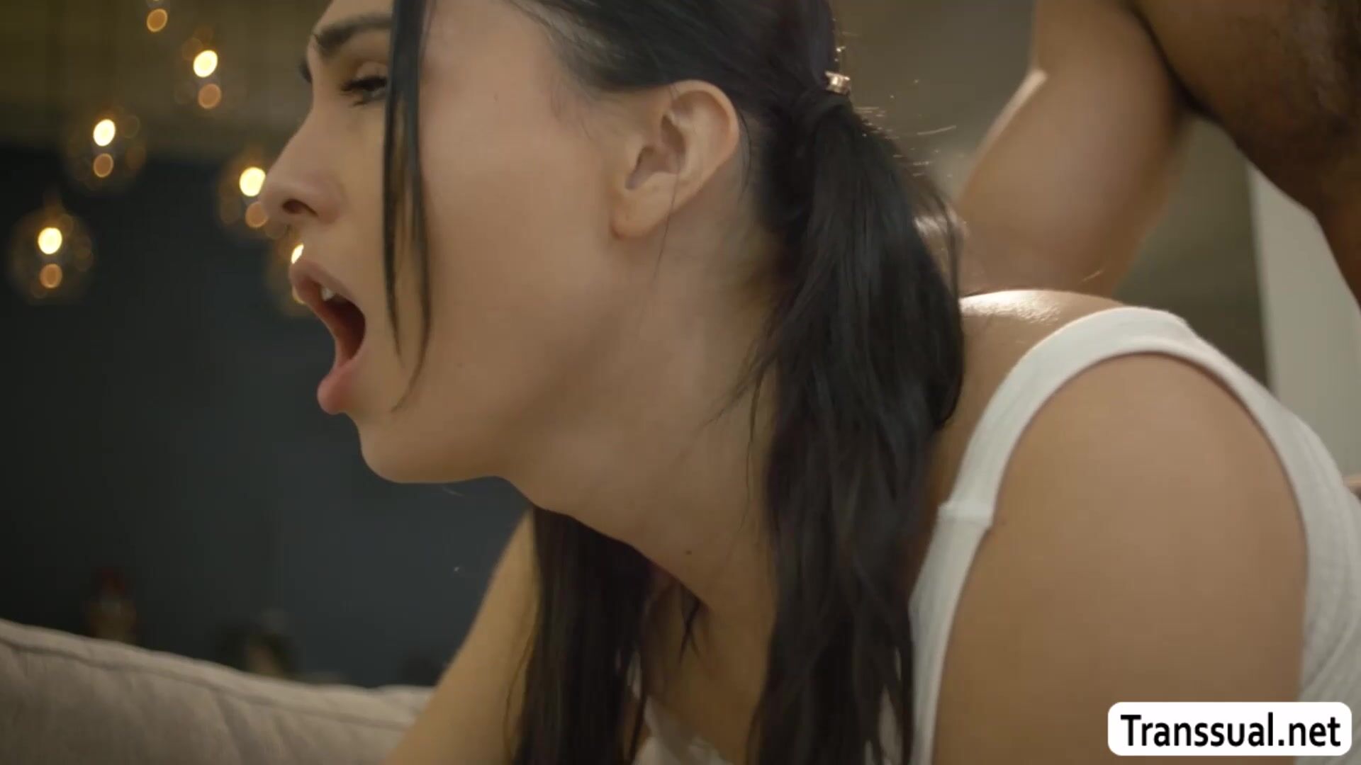 My stepdad is in the bad mood so i let him grab my tits and then let him suck my shecock.After that,I give him a blowjob and then let him bareback fuck my ass.Go to Transsual.net for the full video and more related.