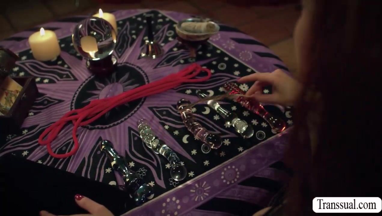 Busty witch summons two shemale and get fucked 2