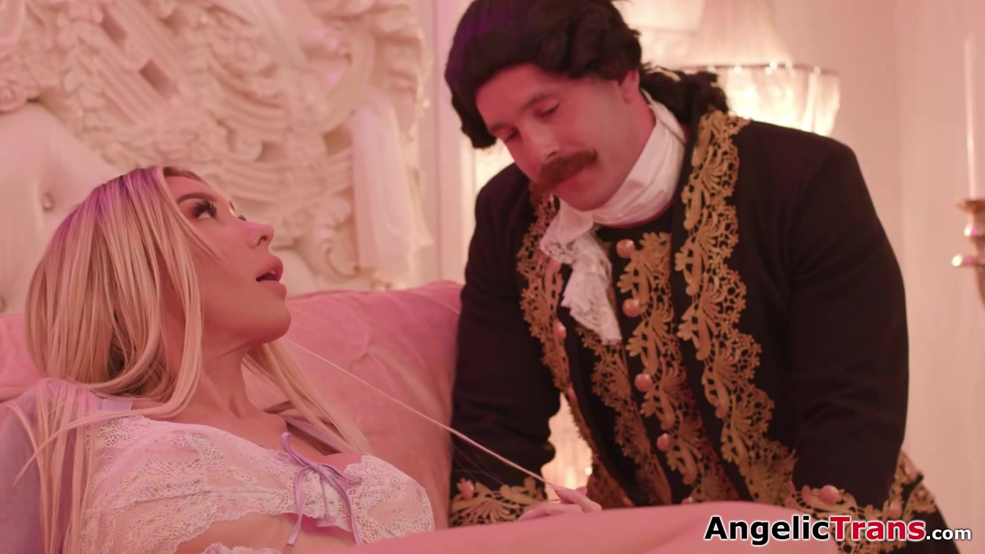 Busty trans princess Aubrey Kate wants to suck off her servants big cocks.The big tits shemale bareback anal rides while getting a deepthroat blowjob.The big boobs blonde royal tranny enjoys that dick up her ass and licks one in her mouth as well