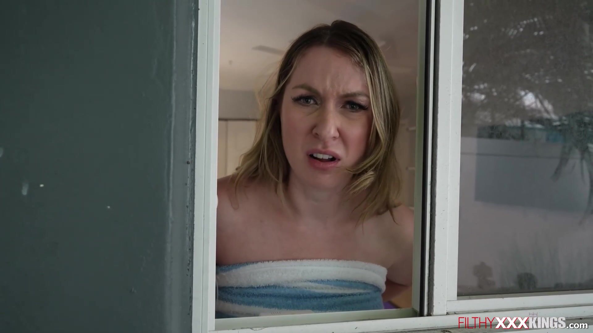 Blonde milf Sydney Paige caught her perv neighbor peeping.The big tits babe makes him lick and finger her shaved pussy.She gets on top of him giving sloppy blowjob before riding on his big cock.Her big boobs were bouncing while getting fucked hard.