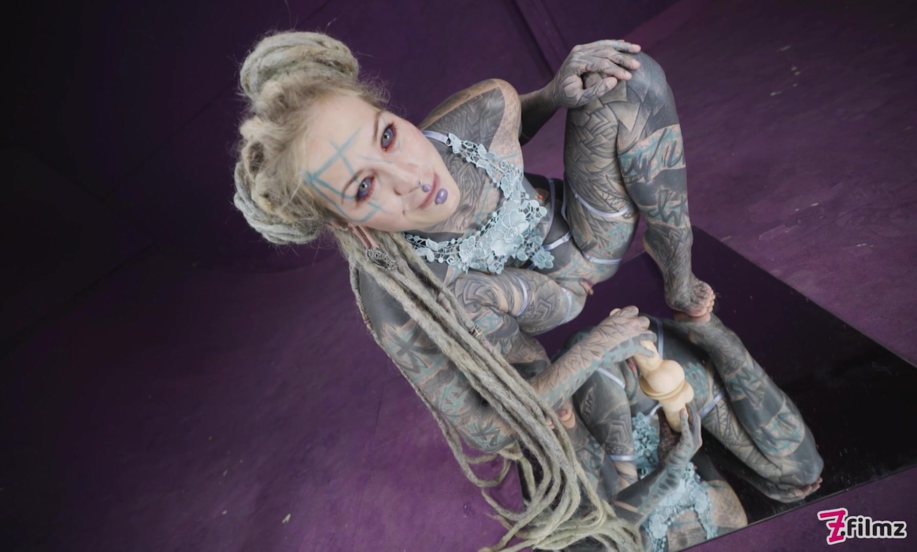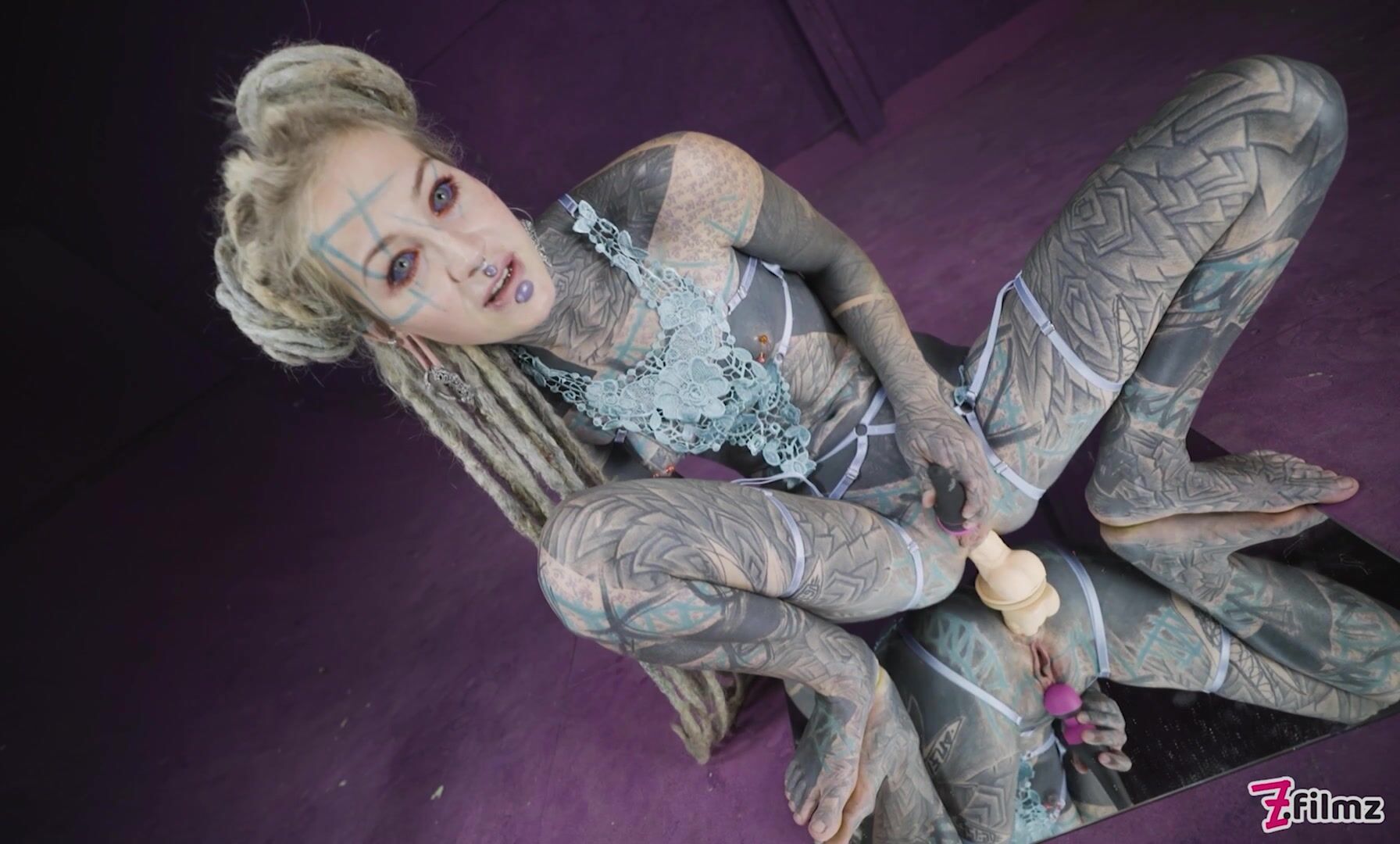 Naughty sexy Anuskatzz in cute lingerie plays with herself, talks dirty to you and fucks her holes with a dildo while standing on top of a mirror!
