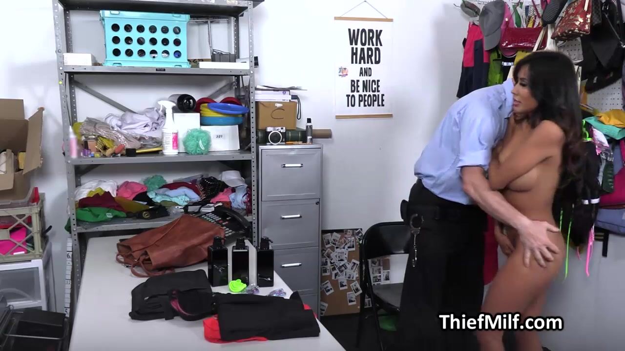 This hot Latina milf runs a hair salon but she needs a lot of stuff for running the business. She tries to still some but got busted with a butt plug!