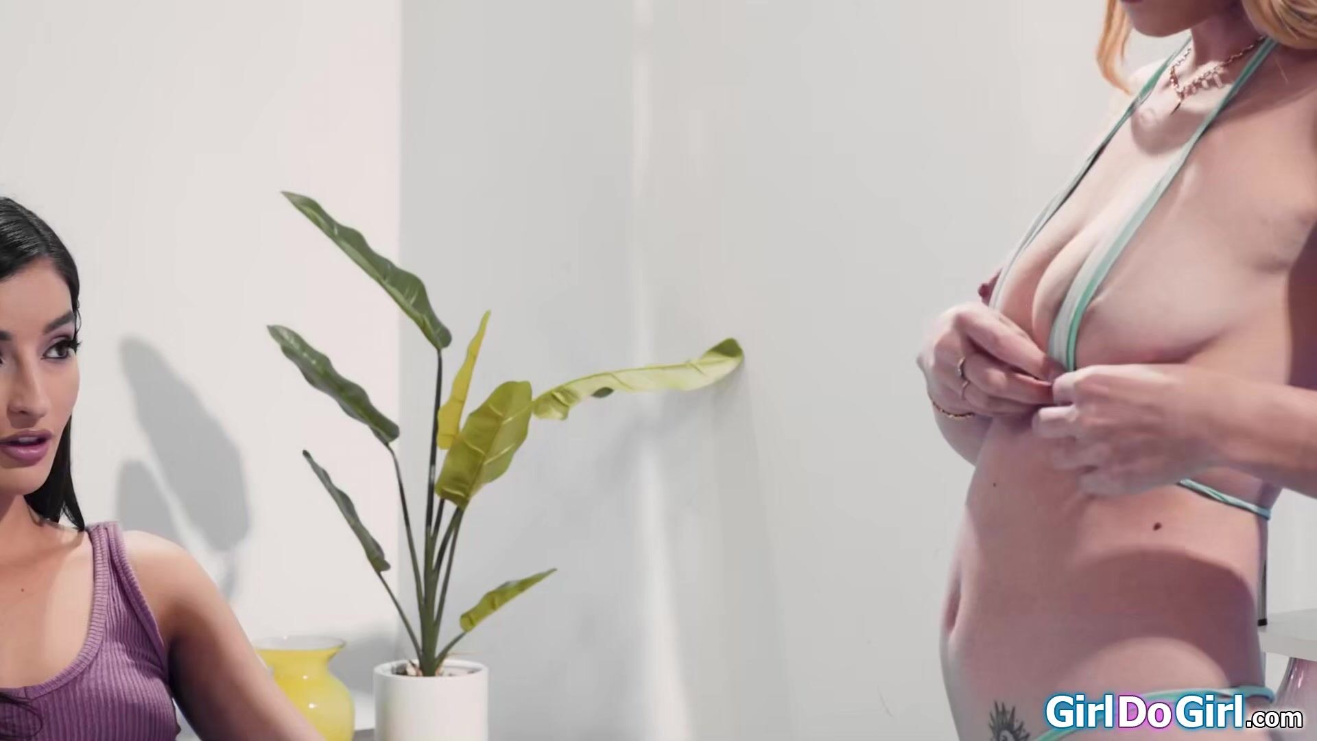 Teen Emily Willis is turned on when she see her bff Leah Lee in a tiny bikini.The petite latina gets her pussy licked and has her bestie stick her ass up so she can give her a rimjob.The small tits brunette and her blonde gf give oral in a 69er