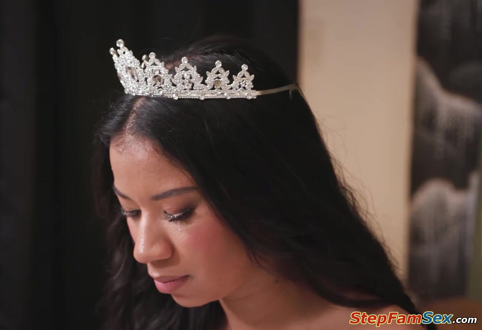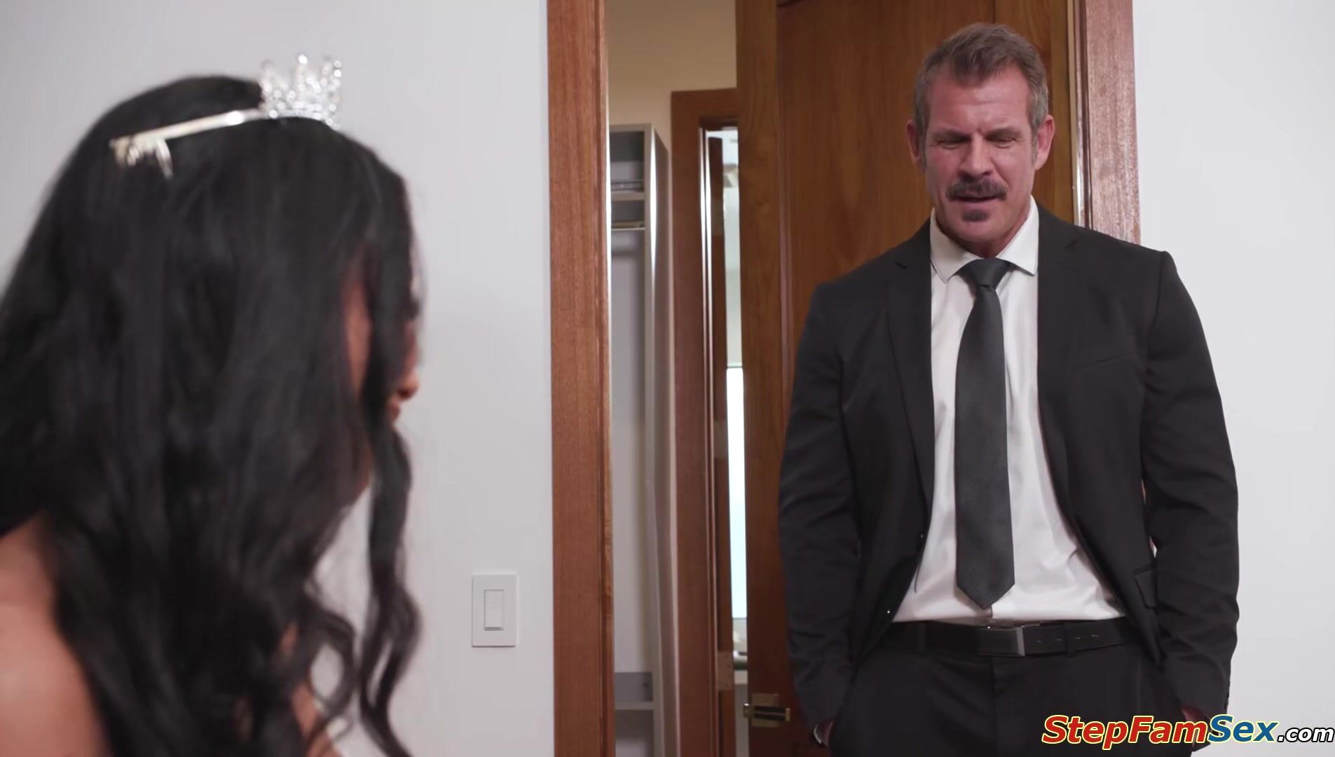 Fatherinlaw tells ebony bride Ameena Green not to worry if she keeps sucking dick the way she does.He takes out his cock and is deepthroated by his daughterinlaw.The petite black babe gets her shaved pussy licked and rides on the guys hardon