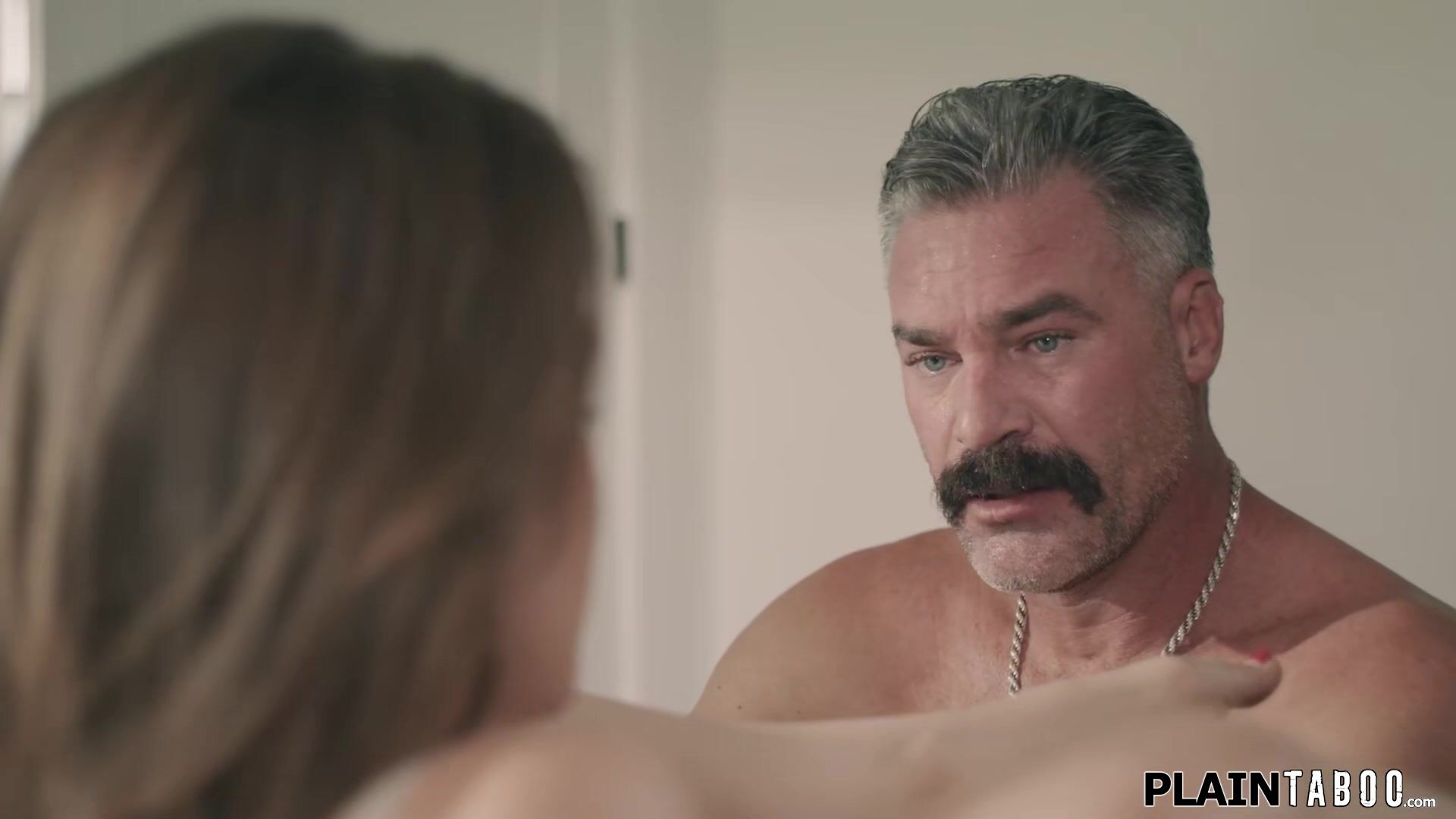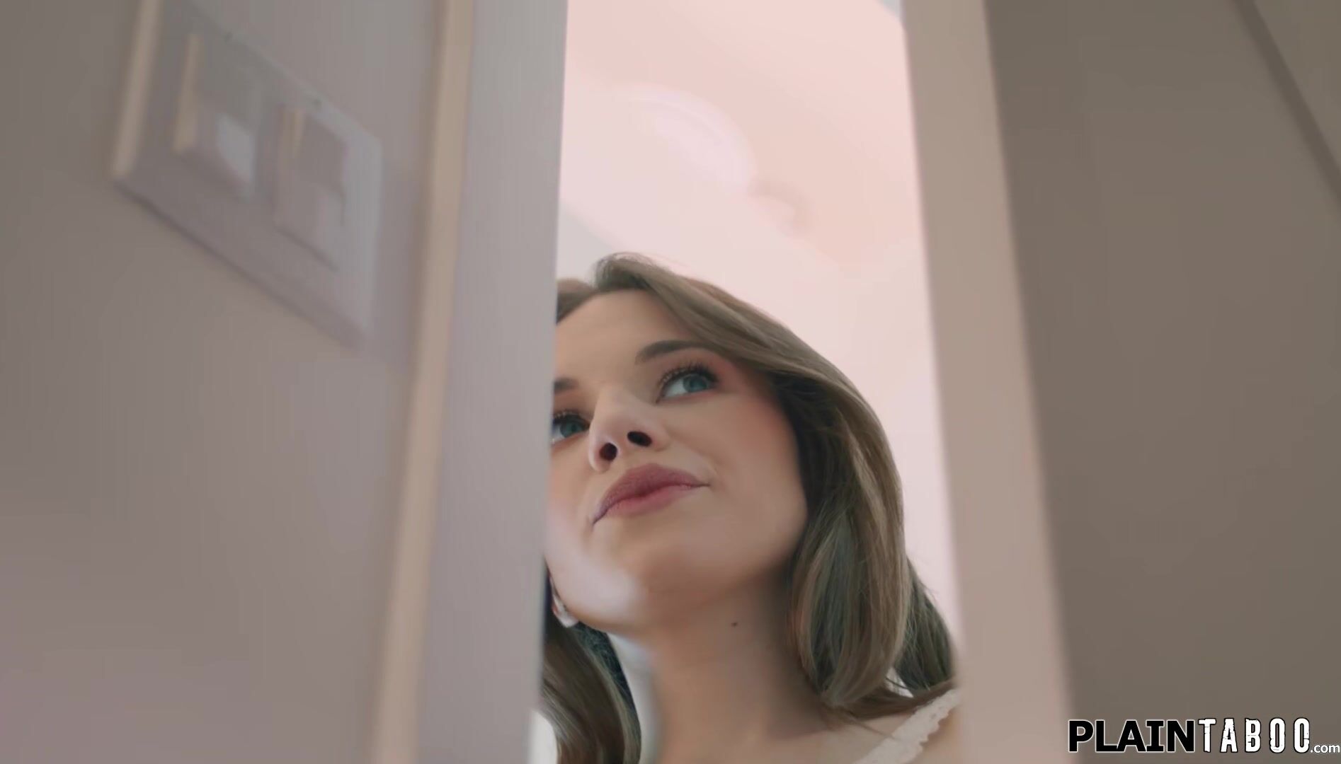 Petite stepdaughter Rose Carter peeps through the open door and sees her stepdad fucking a toy.When he blindfolds himself she quickly puts her pussy ifo him.A moan gives her away.The teen is fingered and facefucked before shes banged by his big cock