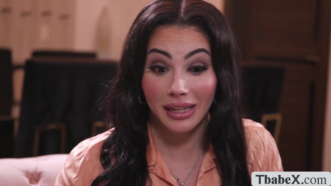 I watch my husband tease this busty shemale before she sucks his hard large cock. Then, I watch him bareback fuck this extremely attractive shemale, and I head to Tbabex.com to see the entire film and more.