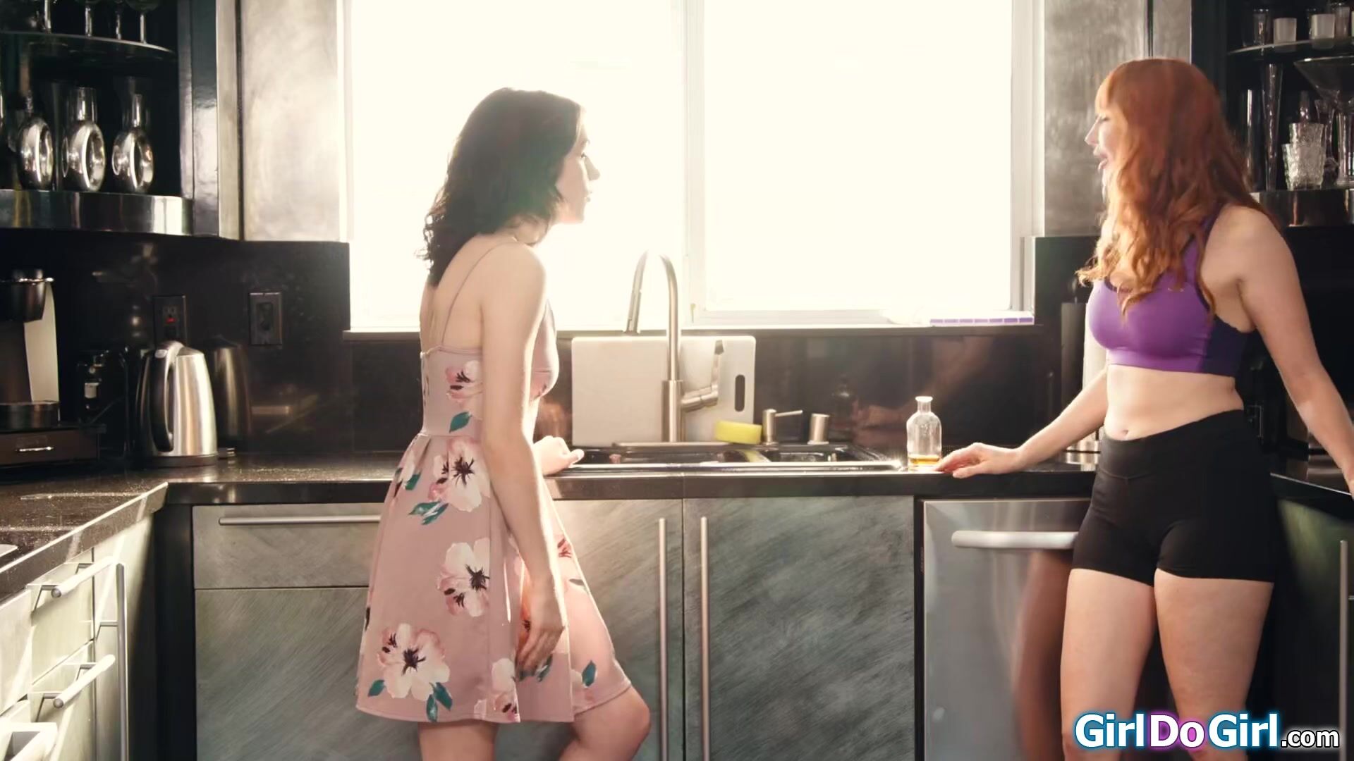 Stepdaughter Rosalyn Sphinx is mad that her busty stepmom Kendra James drank her love potion.The milf turns horny and starts to kiss the petite teen and sucks on her small boobs.The big tits redhead cougar licks her hairy pussy and gets oral