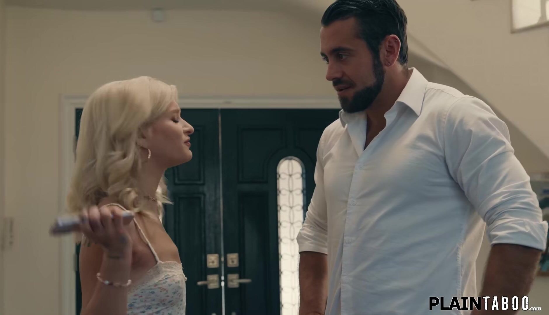 Teen Emma Rosie storms into her cheating bfs house and finds his stepdad there.Not knowing he send the text she persuaded into cheating with him.The petite small tits blonde is fingered and pussy licked.He facefucks the babe and she rides his cock