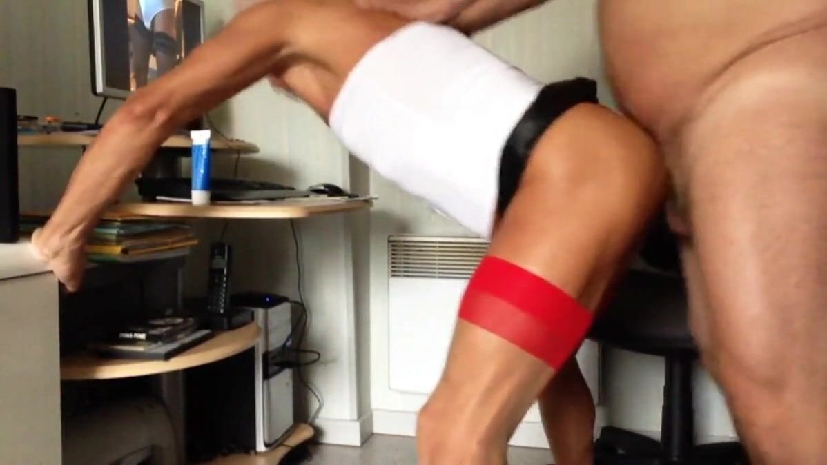 En jupette noire et bas rouges, je me prends un coup de bite que je suce ensuite goulûment en bonne grosse salope