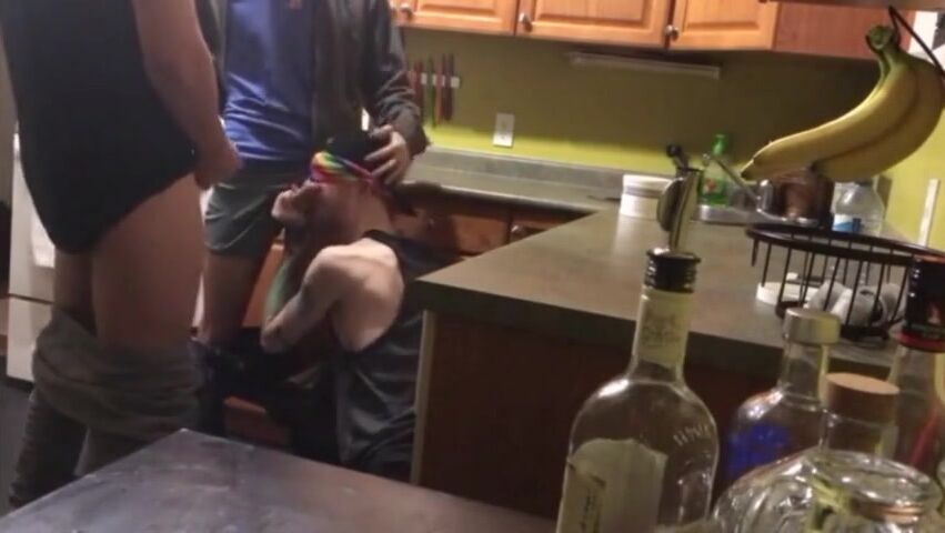 2 buddies fuck me raw in the kitchen