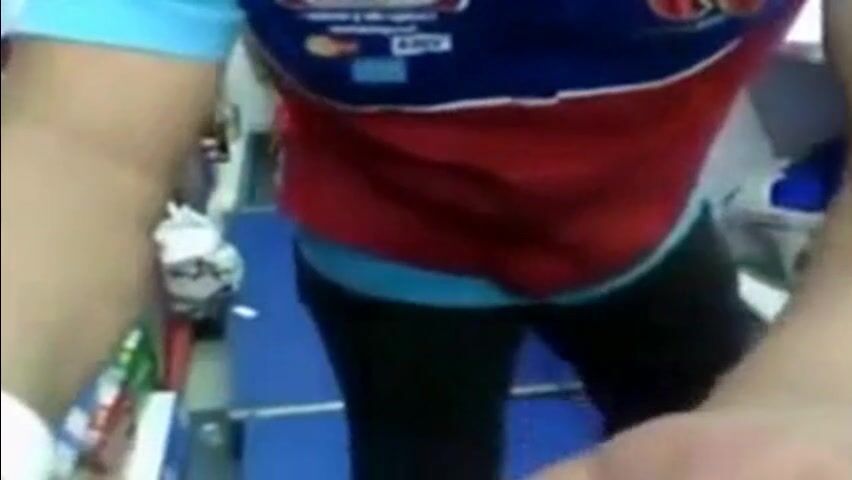 Spompinato dalla collega vengono interrotti da un cliente, ma poi ricominciano fino alla sborrata finale