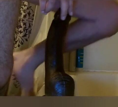 Sissy twink takes massive black dildo.