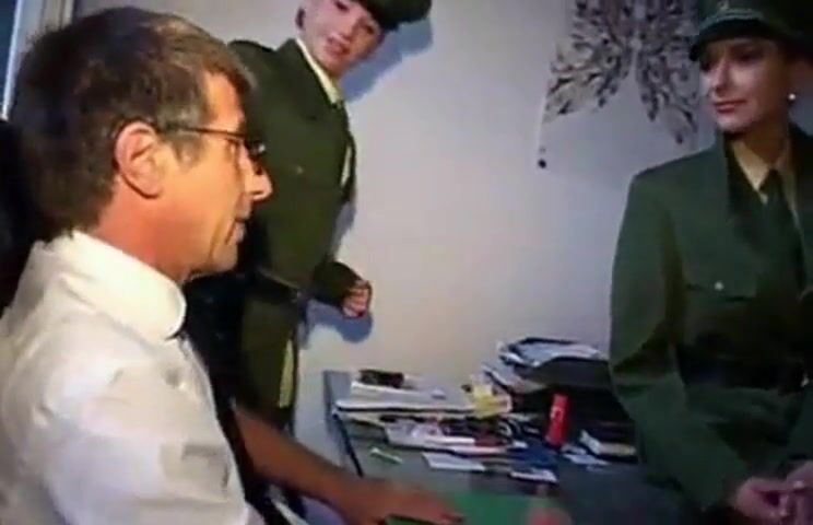 Two german police hotties in uniform taking care of a lucky boss.