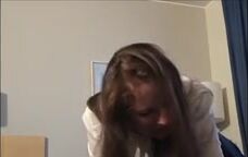 Russian blonde girl sucked the guy and swallowed the sperm