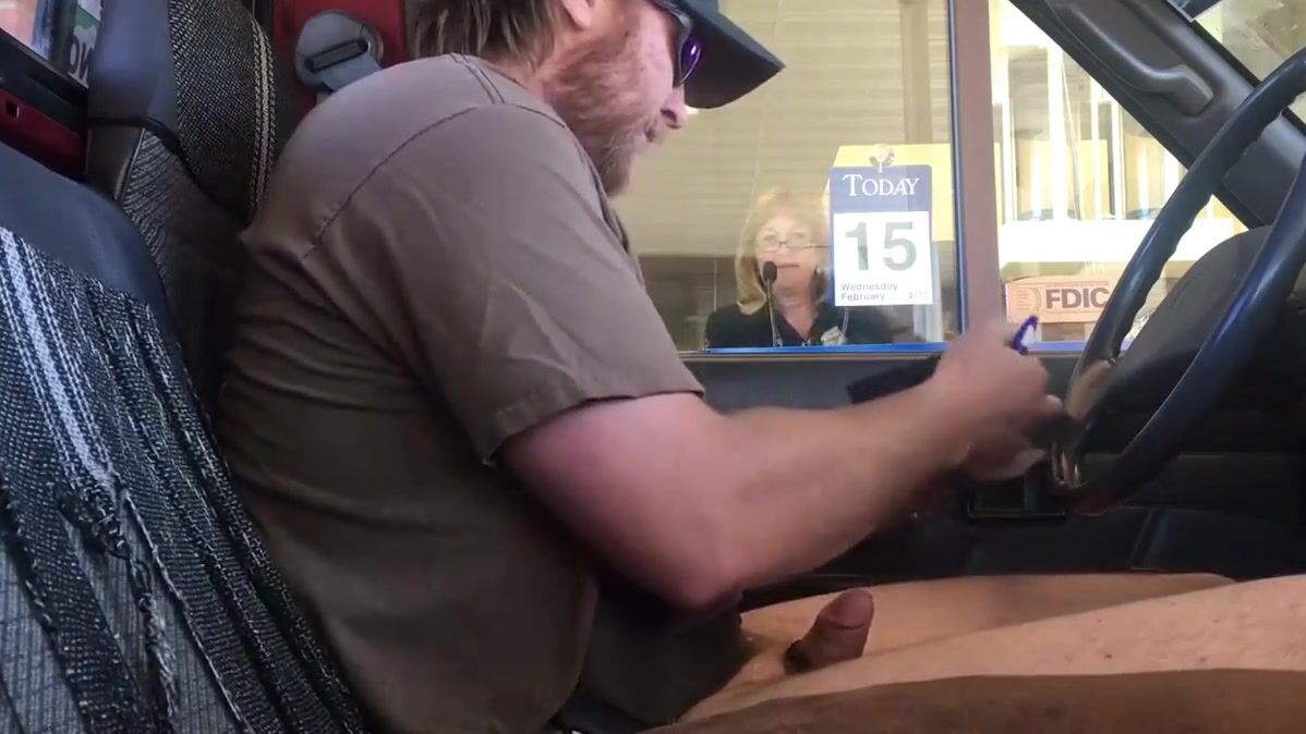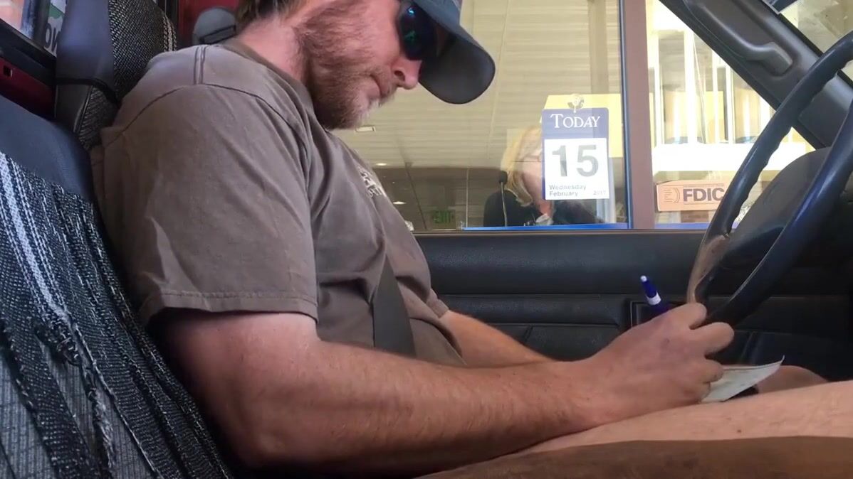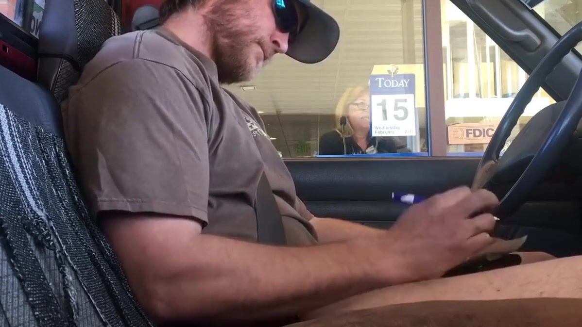 Love this dude. He gets off cumming in public places and such and loves to video it. Here he basically was pulling out money but instead of going to an ATM decides to go to the Drive through Teller.