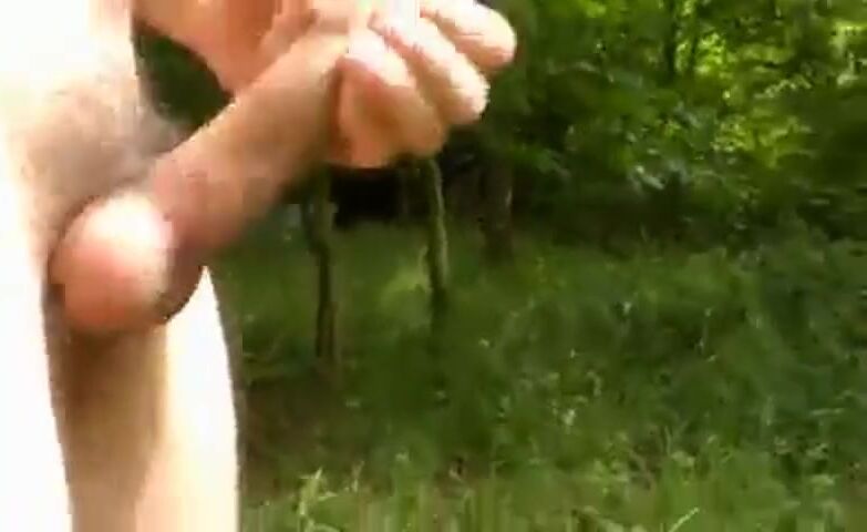 Naked cock play and cum in the sunny woods