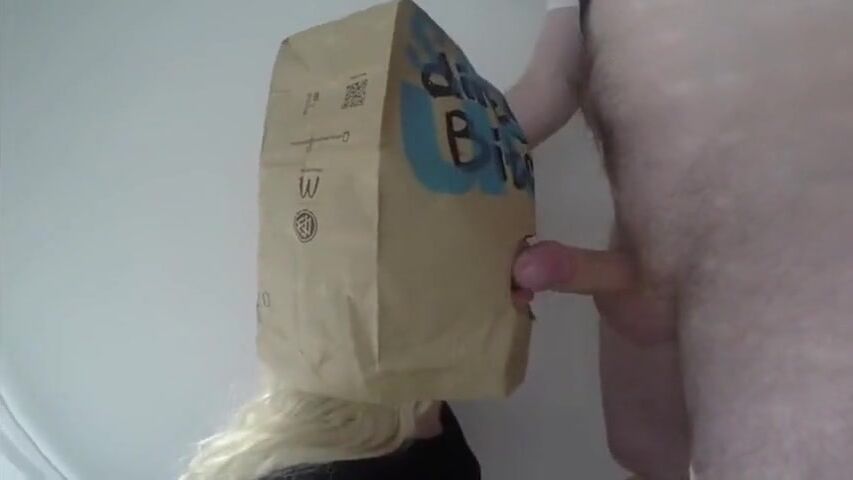 Dirty German girl blowjob with a McDonalds Paper Bag on head