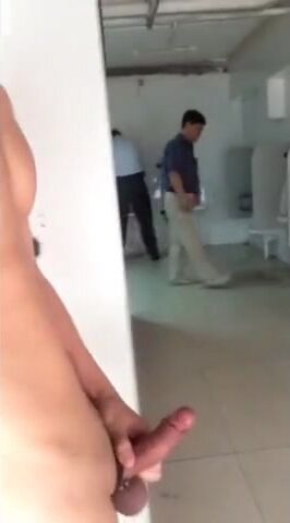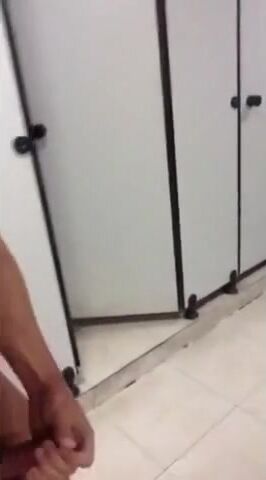 Risky wank in public bathroom