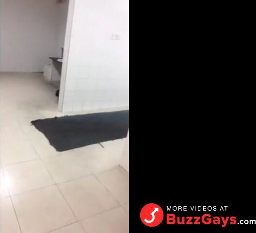 Young asian boy jerks off outdoor in public bathroom. 2 guys came in while happened and one caught him when cum