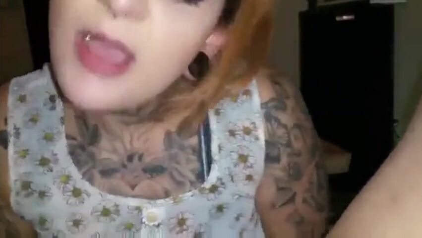 Tatted chick sucks dick