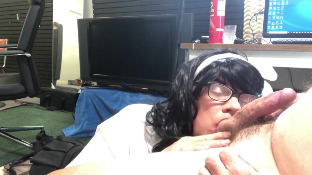 brenda sucks on a cock and then gets bent over and fucked until condom is filled, then emptied on her face