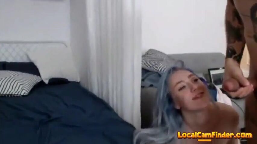 Blue haired cam girl sucks