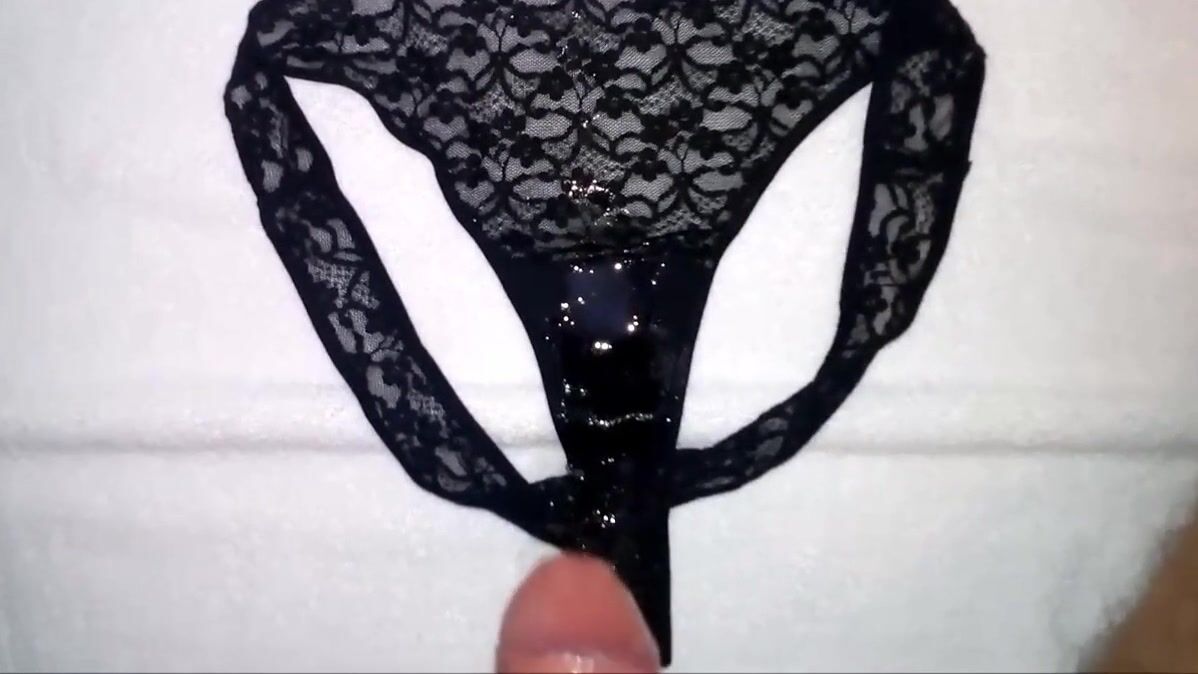 Huge load of cum on my sister's dirty panties (18 spurts)