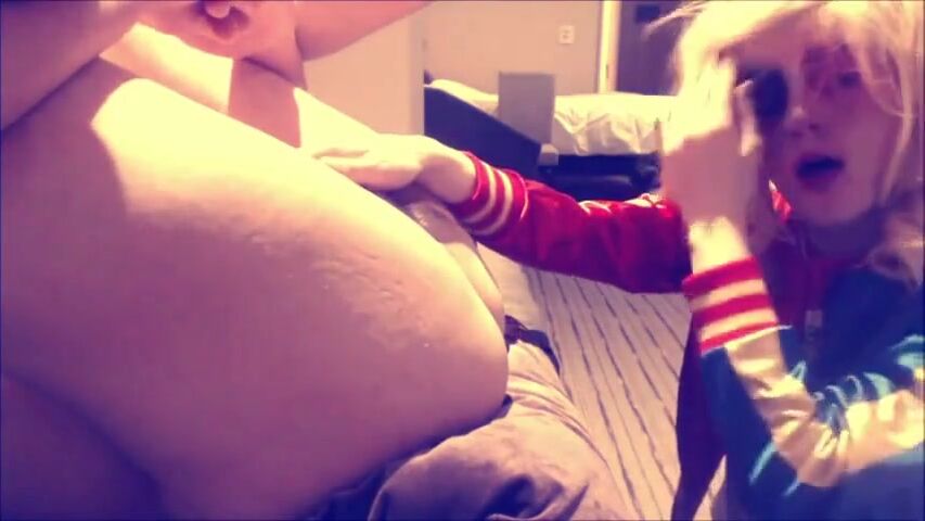 Degraded Harley Quinn crossdresser gives slutty rimjob