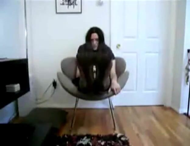 Valerie puts her hot ass in the chair and shows off her long, black full-fashioned nylon stocking legs and feet. CD TV crossdresser tranny transvestite travesti femboi sissy