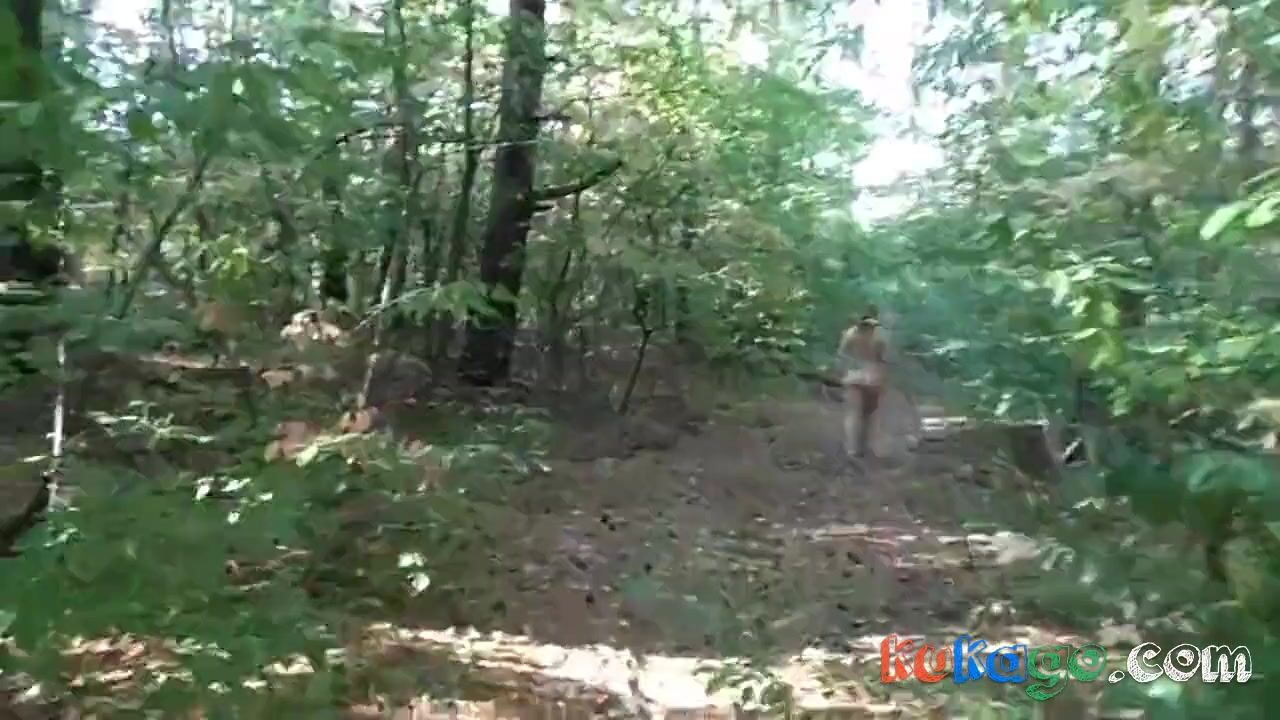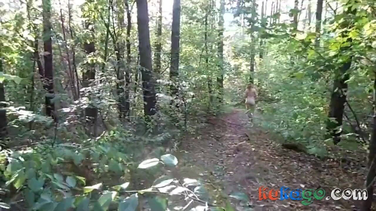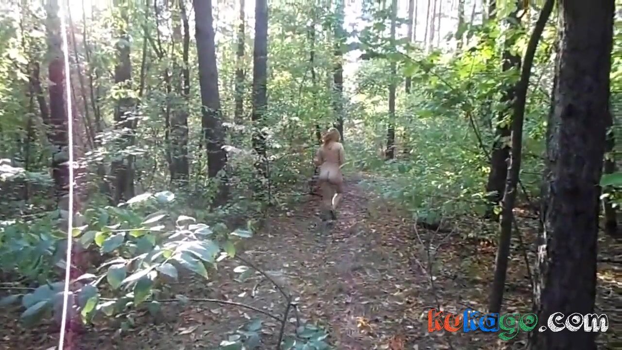 chubby girl with big booty walking nude in forest