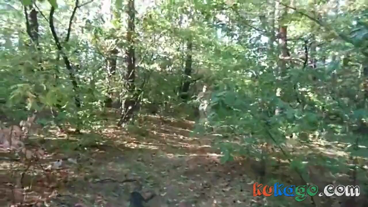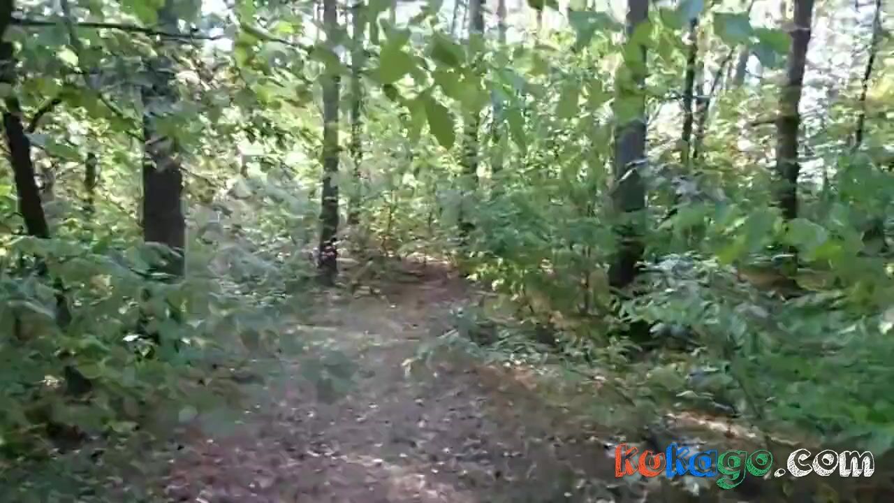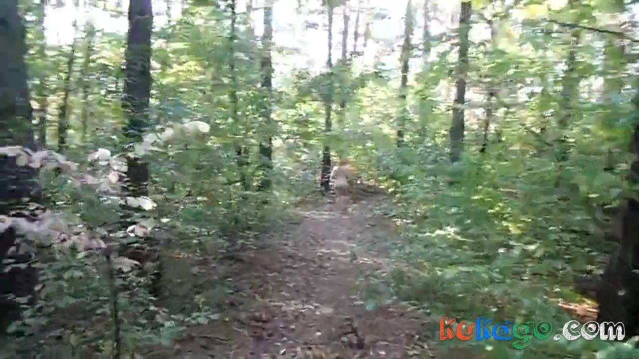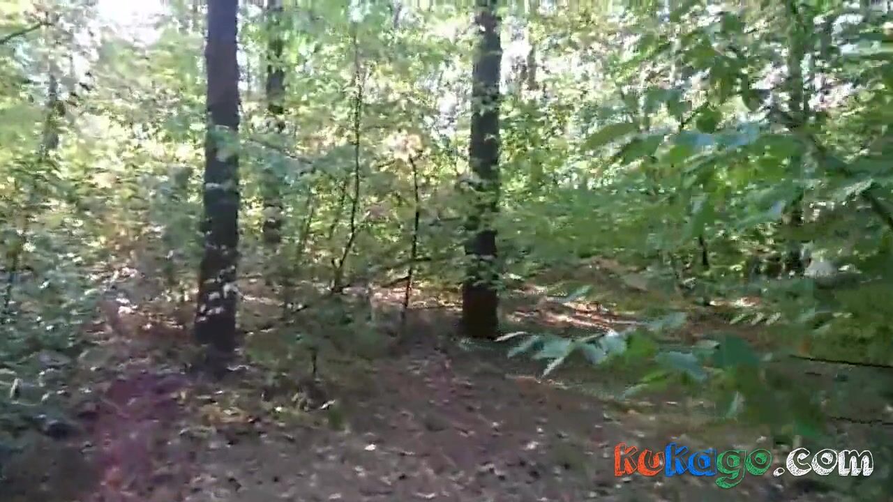 chubby girl with big booty walking nude in forest