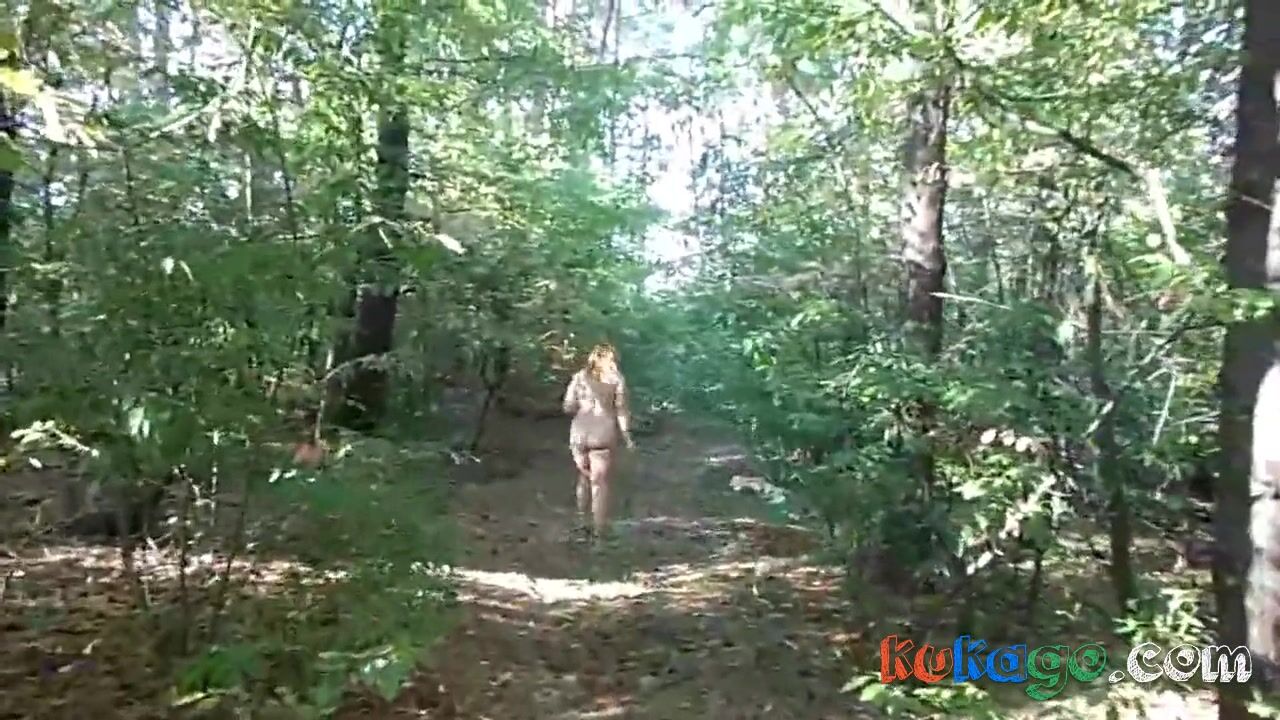 nude chubby girl with big booty walking naked in the forest