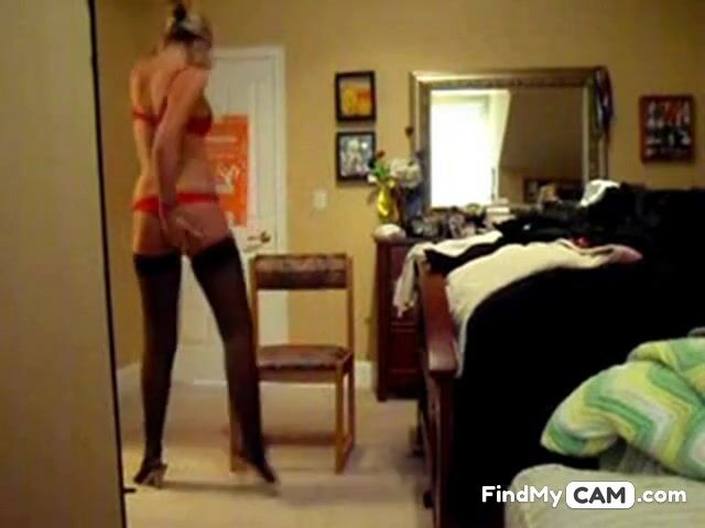 sexy babe strips out of her red lingerie
