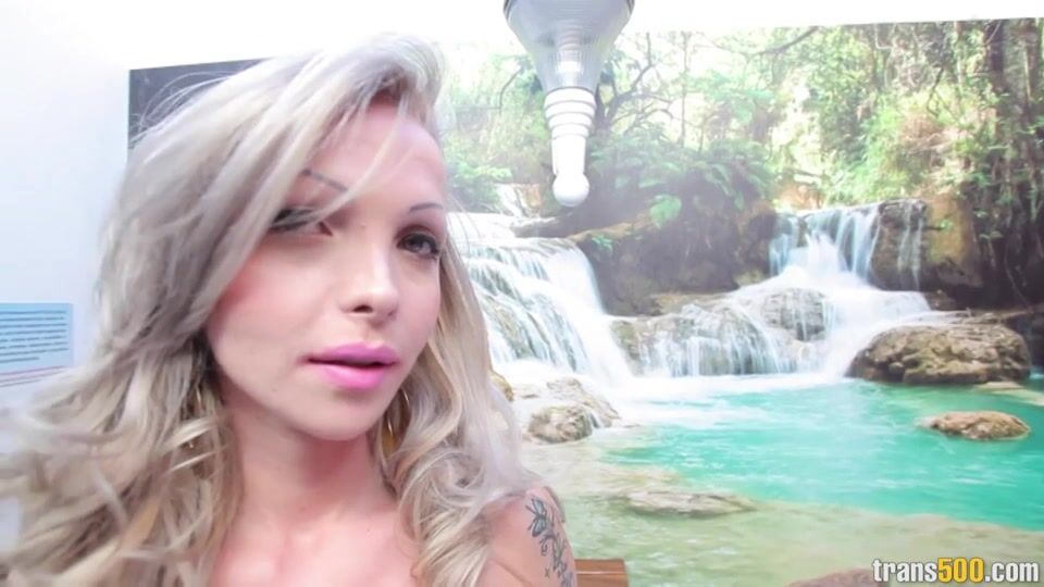 Blonde Shemale Takes Huge Cock