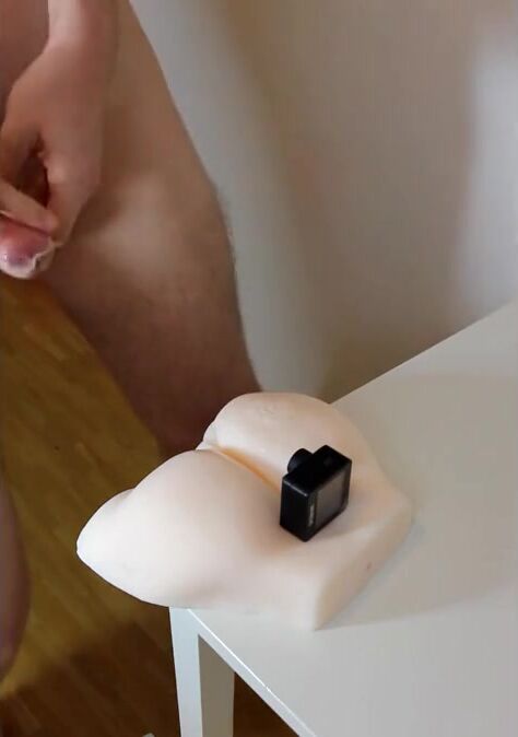 Young straight boy fucks -after recording session- his nice toy-pussy and cums big in condom