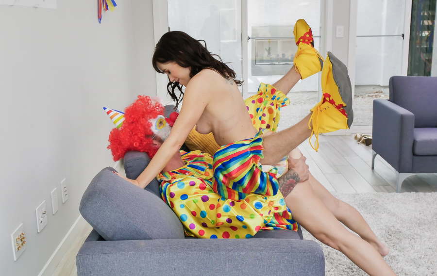 Crazy hot house wife Alana was waiting for the clown to show up but the lame dude arrived super late